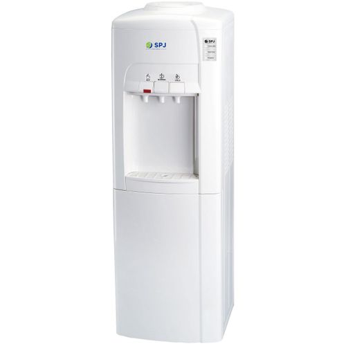 Water Dispenser With Cabinet (storage compartment) – White The SPJ Hot and Cold-Water Dispenser is made with innovation and style. The easy-to-use button spouts make it so much more convenient to use. Simply press the button to let the flow of water come out. The machines highly efficient compressor makes the cold-water crisp and ice cold at approximately 47° F without the need of adding ice cubes to your drink. The hot faucet is hot enough to cook one’s tea or coffee or any other steaming hot beverage at approximately 185° F. Due to the extremely hot water, we’ve added a child safety lock on the hot water faucet KEY FEATURES Free standing stylish design Hot and cold, Efficient and durable. Voltage: 240-220V hot, normal & cold water. ✓ compressor cooling. ✓ convenient push tap. ✓ double safety protection for low water. ✓ low noise design. ✓ anti – bacteria material. ✓ child proof hot water. Child Safe Time Saving Quickly fills water bottles, coffee pots and large containers, High-end cooler provides energy efficiency, reliability and low noise with compressor. Key Features: 16 LITRE CABINET HOT , NORMAL , COLD WATER OPTIONS COMPRESSOR COOLING CONVINIENT 3 PUSH TAPS CHILD LOCK FOR HOT WATER LOW NOISE DESIGN ANTI BACTERIAL MATERIAL PRODUCT DETAILS DIMENSIONS : 332*350*1005MM/CTN COLOUR : WHITE