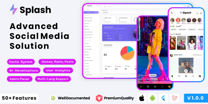 Splash - Social Media Solution Flutter App. Splash - Ultimate Social Media Solution, Live Stream | Slap, Tiktok, Tango Instagram Clone