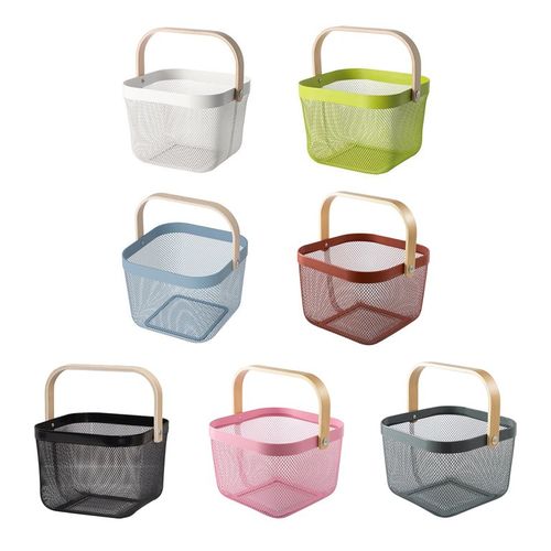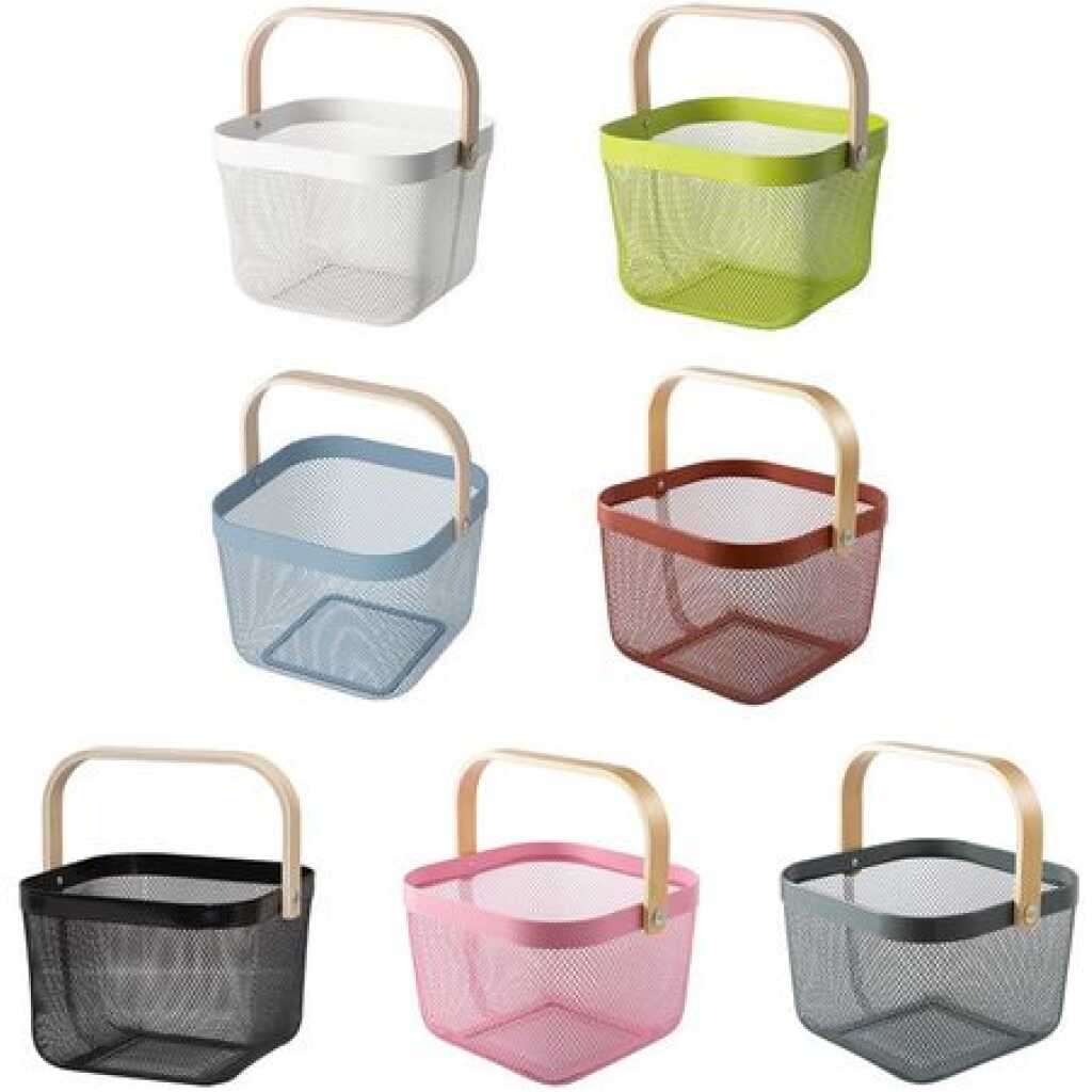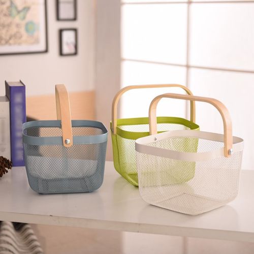 Square Metal Mesh Fruit Shopping Wooden Handle Storage Basket. 1. Made of metal steel mesh and wooden handle, durable. 2. Anti-rust and anti-corrosion. 3. It can be used for household daily use and kitchen storage. For example, fruits, snacks, vegetables, toys, bathroom storage, etc. Specifications: Product Name: Storage Basket Quantity: 1 Pc Package Included: 1x Storage Basket