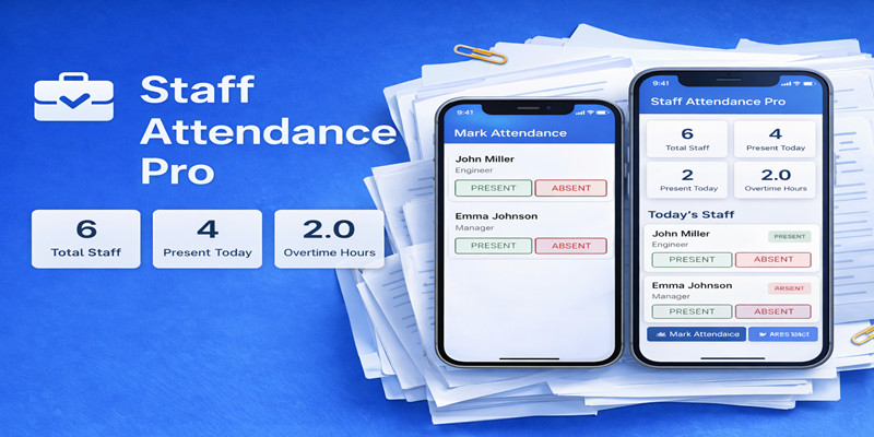 Staff Attendance Pro-offline flutter app. Offline staff attendance manager with shift tracking, present/absent marking, overtime summary and PIN security.