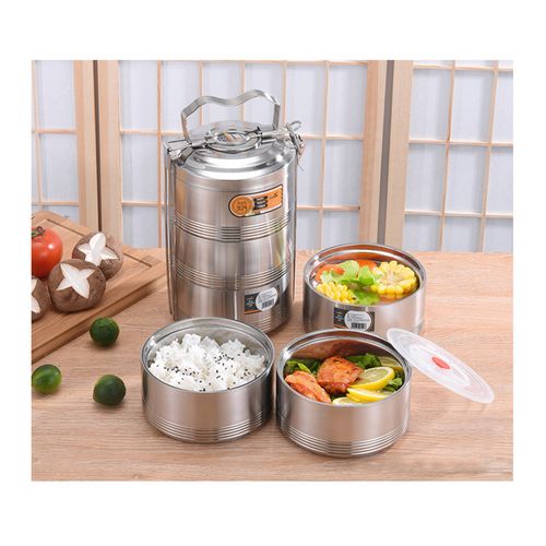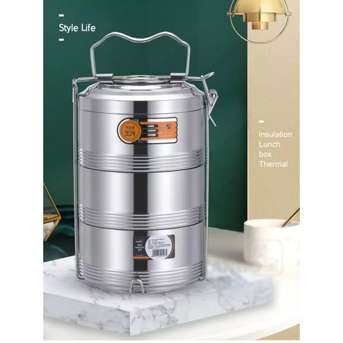 Stainless Steel 16 CM Air Tight 3 Layers Food Container Carrier Lunch Box Carry home food to office with much ease:nothing can beat the pleasure of having home-cooked food in office. If you too, like to relish home food in office or prefer to carry your own food to outdoor, then you must purchase this stainless steel four container tiffin set from royal sapphire. Enjoy carrying different variety of dishes to office now.Sturdy and durable tiffin box for you:the royal sapphire legend 4 container tiffin is made of sturdy stainless steel that makes it durable and long lasting. The outer steel body renders a very classy and elegant look to it. Besides, stainless steel material prevents it from rusting and damage from daily use.Questions You May Care About This lunch box is made of stainless steel, durable and rustproof The food container comes with carrying bag, which is very convenient to carry Each container with leak proof No matter where you always can eat your own delicious and healthy fruit snack or other food. Meet the ultimate versatile lunchbox, Your best friend in kitchen or outside. Thanks to their unmatched quality Offers the stainless steel food storage container comes with the top notch quality Durable and beautiful shoulder strap bag fashionable to carry and handled. Keeping cool or hot your food and beverages for hours while traveling. Easy to carry with adjustable shoulder strap with buckle for carrying comfort. Versatile bag excellent for work lunches, picnic, travel, BBQs,camping,beach etc Small front pockets for your keys, phone, wallet and other essentials. Hidden handles, more beautiful Food grade silicone seals, prevent leaks Layers of buckle, more safe and strong. Product parameter Product Name: Stainless Steel Lunch Box Product layers: 3 layers Multiple configurations: simple package/sealed leakproof Applicable places: school/company/going out Product material: 304 stainless steel; 201 stainless steel; sealing ring: silica gel
