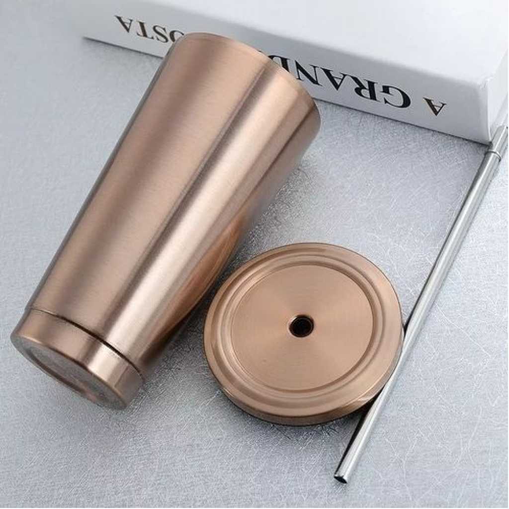 Stainless Steel 500ml Coffee Mug With Lid Tea Cup Thermos Beer Travel Tumbler With Straw- Silver. This coffee tumbler cup is made from food-grade 304 stainless steel that will not break. The capacity (500ml) is large enough to fit your daily hydration needs. You can also store coffee or any other liquids. In any temperature condition, your cold drink will perfectly stay 3 hours and hot drinks will keep hot up to 2 hours Design with straw, very convenient, and special spiral plug help keep leakproof The insulated coffee tumbler is a great gift for any occasion for family or friends. Material: Stainless Steel Color: Rose Gold, Silver Capacity: 500ml Size: Approx. Height 18cm/7.09inch, Base diameter 7cm/2.76inch, Port diameter 10cm/3.94inch