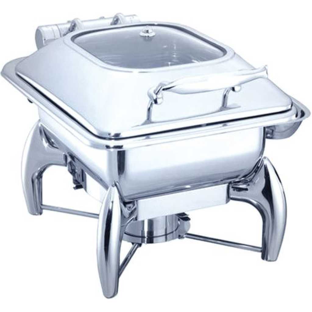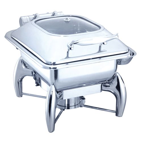 Stainless Steel Buffet Food Warmer Glass Lid Square Chafing Dish. Features a stainless steel, with a mirror-polish finish for a unique look, this SUPER DEAL chafer is designed for everyday use at your finest catered events. Use it to create a beautiful buffet setting without breaking the bank. Plus, whether you’re serving up a delectable egg bake or your signature side dish, this chafer will present it in style. Durable Construction Durable stainless steel construction ensures this chafer is built to withstand everyday use while providing a timeless appearance that blends in with your classic decor. Mirror Finish Each chafer features a highly-polished mirror finish that will shimmer in the ambient lighting of your venue. With its high quality finish, this chafer will add to the presentation value of any of the sides or entrees that you are serving! Sturdy Handles A sturdy handle on the cover makes for efficient service, while two handles on the chafer stand ensure easy transport. Broad Legs For optimum stability, a total of three broad, evenly-spaced legs keep the chafer sturdy on your buffet line. Elevated Fuel Stand The fuel stand is positioned close to the water pan. This helps maintain your food’s serving temperature for hours.