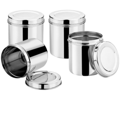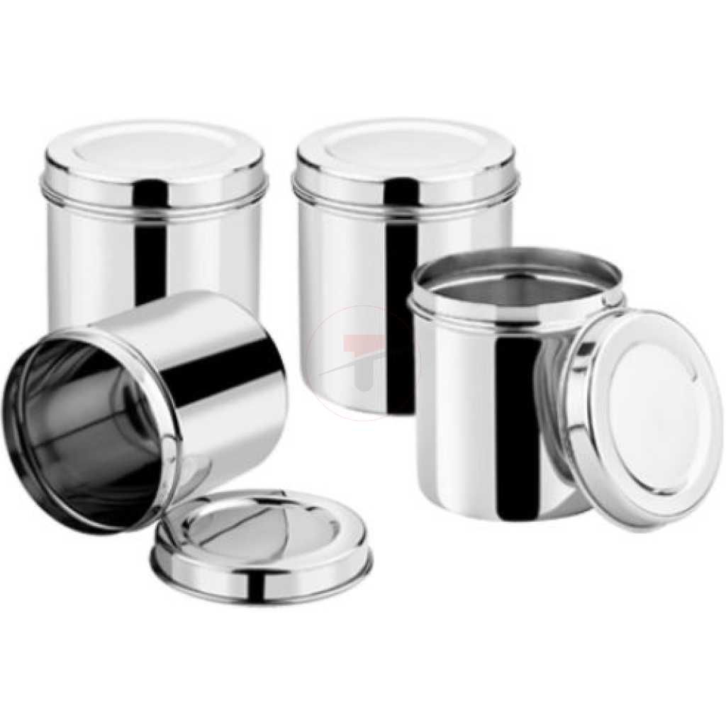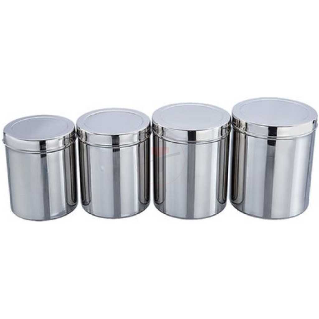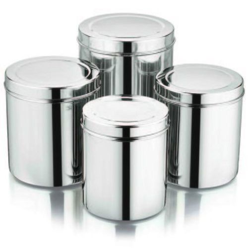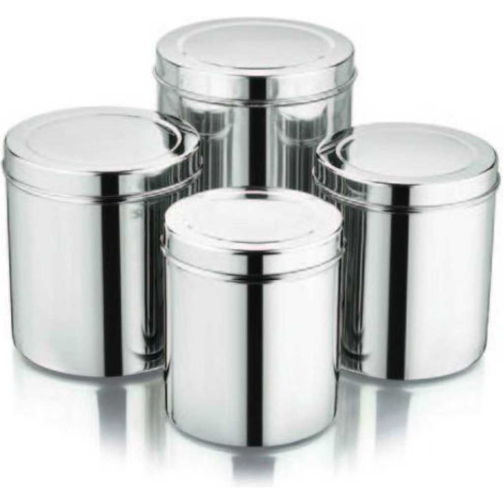 Key Features: Stainless Steel Deep Tins With Lids (Set of 4) -(Capacity of 3 L, 2.5 L, 1.8 L, 1.25 L) – Vertical Storage Container – Silver Great for use in storing cookies, sugar, flour, spices, and other kitchen staples Clear acrylic lid with silicone gaskets to help preserve stored food items Flip-top lid; locking clamp closure Capacity: 3, 2.5, 1.8 1.25L. Care and Cleaning: Wipe Clean With a Damp Cloth