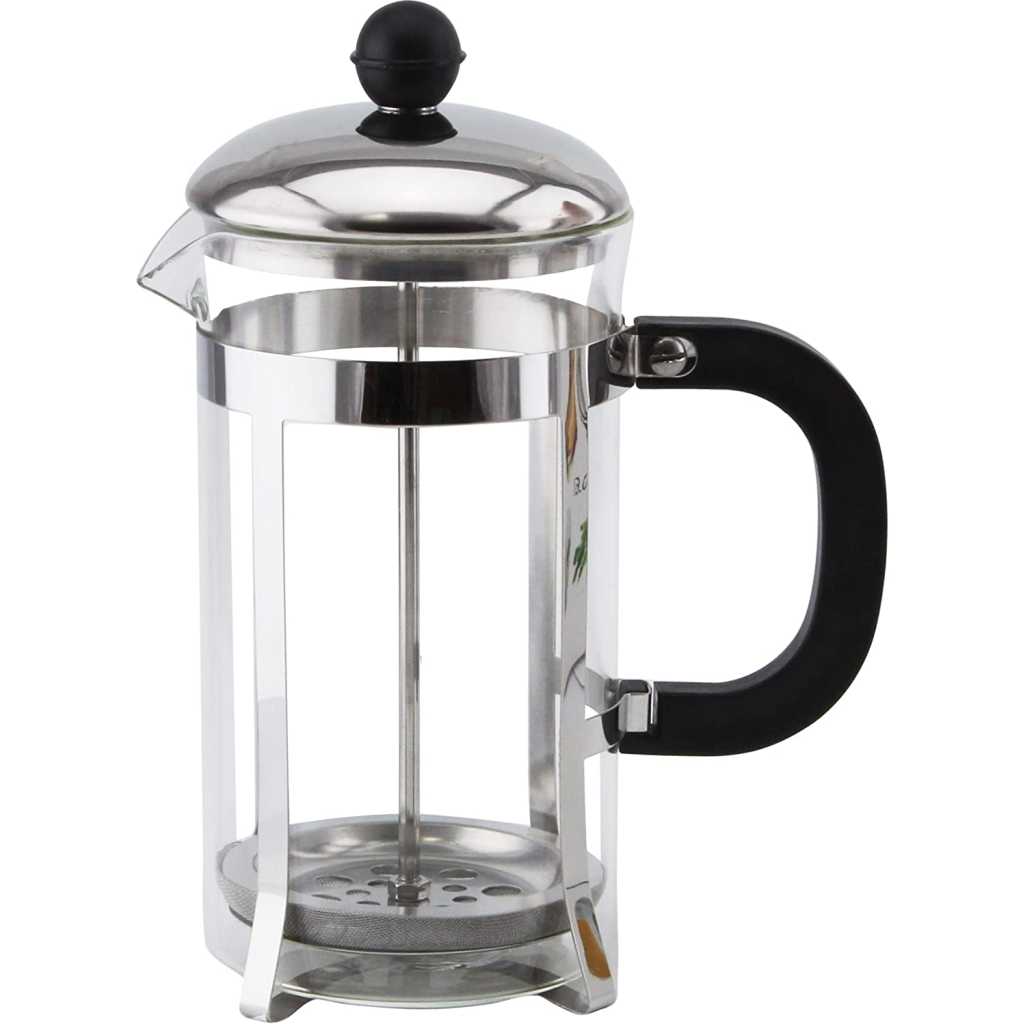No More Cloudy Coffee ˜… We Have Fitted A High Quality Metal Filter On This French Press Coffee Pot That Leaves Little To No Grinds In Your Brew, Creating The Perfect Cup Of Tea Or Coffee In Under 4 Minutes.˜… Built For Durability ˜… This French Coffee Press Features An Extra Tough Heat Resistant Borosilicate Glass Carafe That Does Not Break As Easily As The Others, And High Grade 18/8 Stainless Steel Components That Keep Rust At Bay.˜… Sleek and Timeless Design ˜… This Personal French Press Has That Classic Coffee Maker Appeal, With Highly Polished Stainless Steel Accents Making It A Memorably Beautiful Gift For Any Coffee Lover.˜… Ample Capacity ˜… The 600Ml Capacity of This French Press Stainless Steel and Glass Coffee Machine Allows You to Brew Up To 6 Cups in Just One Pressing. An Ultra-Smooth Plunger Mechanism Makes For Effortless Use. Product Description:BPA-free, lightweight and durable kitchen equipment and accessories that help you enjoy your healthy drinks anytime and anywhere with minimum effort. Now make different tea and coffee-based beverages with the help of this multipurpose coffee press. Key Features: Volume: 800ml The handle of the product is heat-resistant. V-shaped spout for easy pouring of the beverage. Durable construction. It also has stainless steel filter that does not allow rust to form. Easy to clean and dishwasher safe.