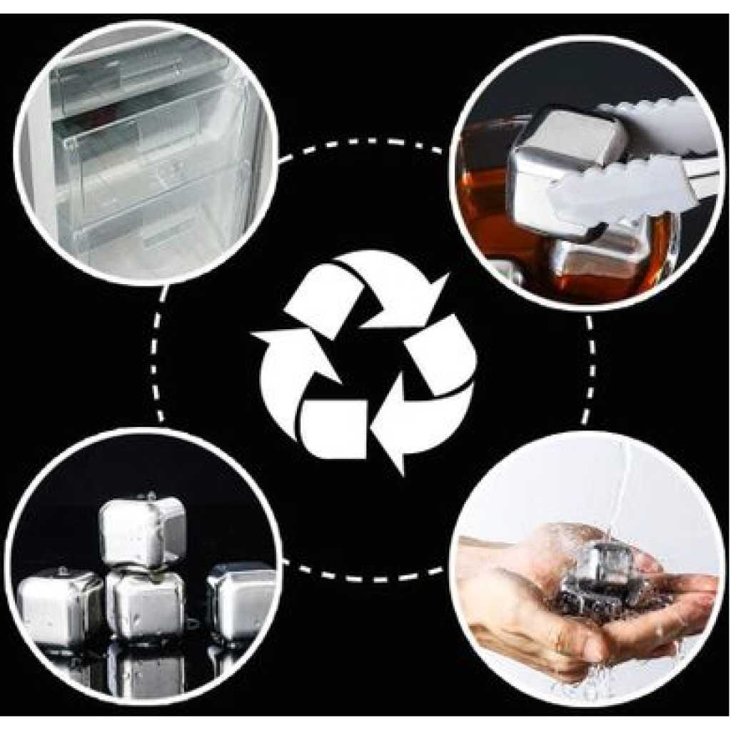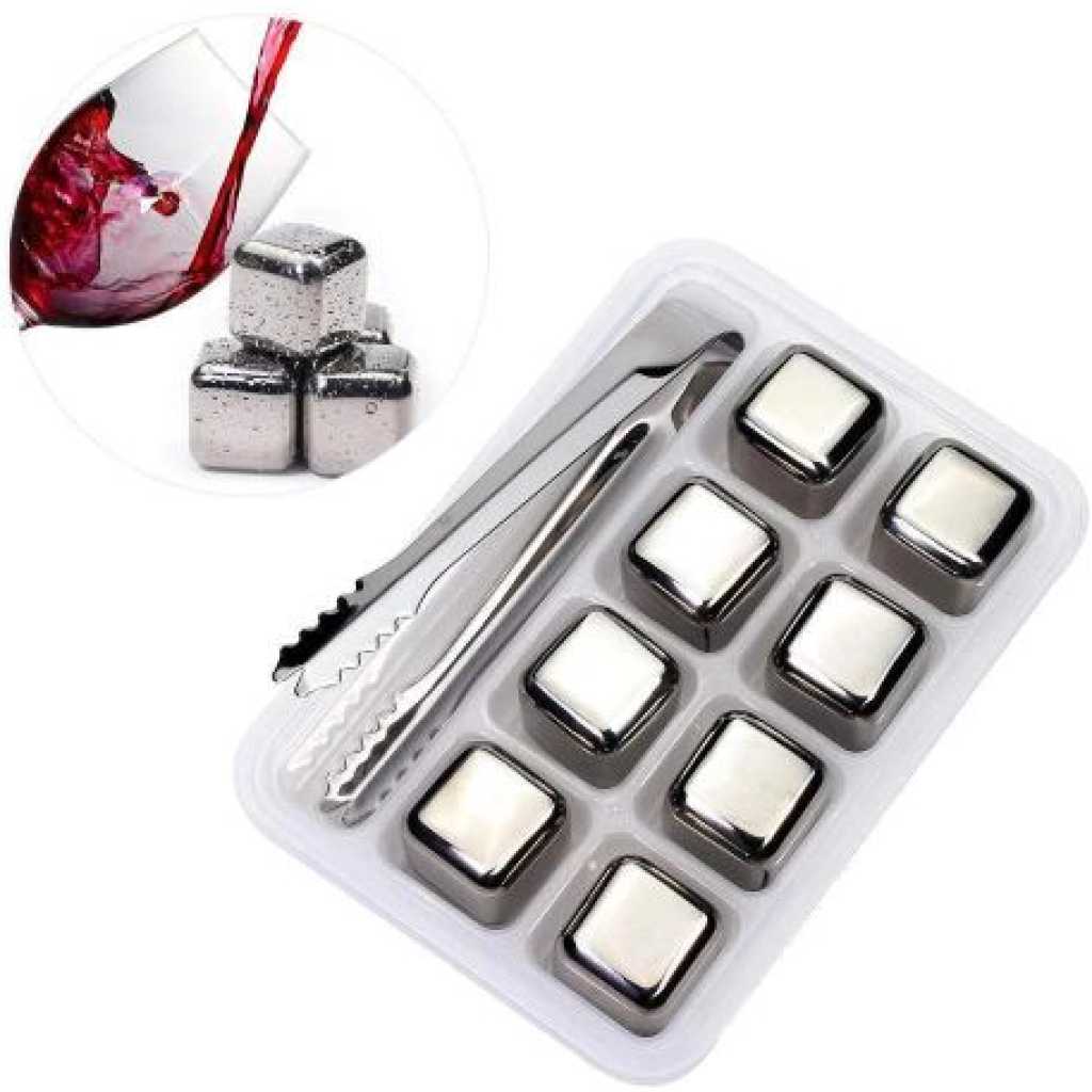 Key Features: Stainless Steel Ice Cubes Chilling Cube Whiskey Stones Durable Reusable Chilling Stones for Whiskey Wine, Whiskey Stones for Kitchen Bar(Pack of 8) With A Tong- Silver COOL DOWN FAST: Before putting the stainless steel ice tubes in the fridge to freeze, just slightly dampen them. Usually, 1-2 hours frozen time is ok, for better enjoyment 3 to 4 hours is suggested. NEVER DILUTE: Can be used for cooling Whiskey, Beer, and juice. Since the reusable ice cubes’ stainless steel doesn’t melt or rust, you don’t have to worry about diluting, or affecting the flavor of the whiskey Premium Quality: Made of high-quality food-grade stainless steel 304 which from a smooth design, the stainless steel ice cube set, does not scratch glass, hit your teeth, and will not be swallowed, they are durable and dishwasher safe. EASY CLEANING AND STORAGE: 6 reusable stainless steel ice cubes are filled with food-grade liquid and a freezer storage tray is included. Plastic storage tray to keep your whiskey stones clean and to organize them during freezing, just simply water wash after use, very convenient. ELEGANT GIFT FOR FAMILIES AND FRIENDS: The stainless steel ice cube set is stylish and luxurious, making it an elegant gift for your family or your friends. Can be used at home, office, or parties for enjoying a relaxing time. Also used for sprains on the body, bringing down a fever, or reducing swelling.