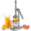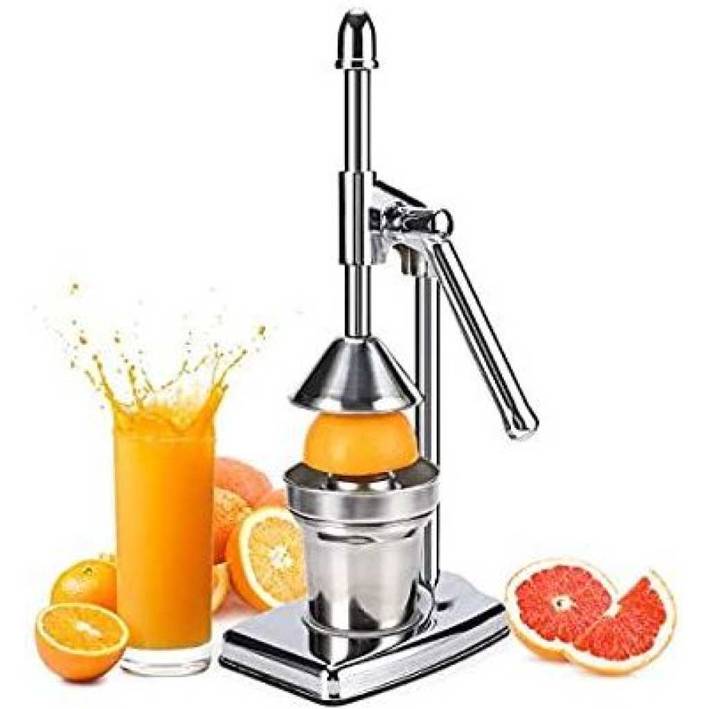 Citrus Juicer made of Stainless Steel. Kitchen or Restaurant use, Ideal to squeeze your favorite Fruit or Vegetables to enjoy a fresh Juice. Instructions: Cut fruit in half, Take the fruit and place it on the strainer, you may want to use a knife to make a X cut in the pulp to better fit on the strainer, Pull the lever down slightly to hold the fruit in place,Support the juicer by placing your hand on the base or the top of the shaft of the Juicer, Pull the lever down to squeeze the juice, Release the lever slightly and press down again, If juice remains on the fruit, cut the fruit in half and repeat steps 4-6. Enjoy the great taste of fresh citrus juice anytime Lever-gear handle provides pressured leverage for strong juicing squeeze. For best results cut the fruit in half then make slits that go 1/4-1/2 way through the fruit to make it more flexible to be squeezed. Rubber base feet prevents table surface marring and ensure secure base setting Stainless steel juice cup (volume: 2-cups) and strainer that separates pulp and seeds efficiently Parts are removable for easy cleanup