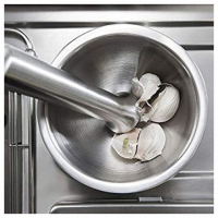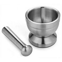 This handy stainless steel mortar and pestle set is great for crushing, grinding and mixing herbs and spices. Heavy gauge, durable stainless steel is easy-to-clean, and will not wear out. Smooth and non-porous surface leaves no residue nor stain. Mortar external diameter:Approx.100mm Mortar inner diameter:Approx.85mm Mortar height:Approx.92mm Pestle small diameter:About 25mm Pestle large diameter:About 35mm Pestle length:Approx.140mm Double stainless steel construction,heavy and durable. Clean elegant lines look great on your counter. Non-porous stainless steel resists odors A great, modern design that will look great in any kitchen or pharmacy. Material:Stainless steel Color:Silver Included: 1x Mortar 1x Pestle Double stainless steel construction, heavy and durable Functional Design with Non-Skid Base, Heavy-Duty Pestle Press Patent Pending & Copyright Protected Clean, Durable, Elegant, Practical, Low-Maintenance and Eco-Friendly Food-safe, no BPA, no lead, no mercury, elegant, durable, easy-to-clean, no residual taste, low-maintenance Key Features: Environmentally y clean Contains 1 Mortar and 1 Pestle Set Also used in the pharmacy. 100% brand new and high quality. Double stainless steel construction,heavy and durable. Clean elegant lines look great on your counter. Mortar has a non-skid base for secure placement while grinding. Non-porous stainless steel resists odors. Can be used to grind garlic,nuts,pills etc.