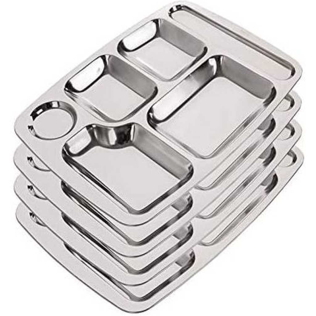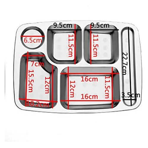 Key Features: Stainless Steel Rectangle 6-In-1 Component Dinner Plate Tray For Lunch. Made of high-quality material, more durable. 100% Brand new and high quality High-quality stable structure, healthy and environmentally friendly. Lightweight and durable material for durable and practical use EVERY DAY USE: The four sections are great for children and adults for picnics, camping, or dinner. HIGH QUALITY: 100% food grade 304stainless steel. BPA free. Toxin-free. Dishwasher safe. thickness:1.0MM EASY TO CARRY AND STORE: These sectioned round plates can be conveniently stored and packed. Many customers replace their lunch plates in the cafeteria or at work and use the compartments for portion control. ONLY BUY ONCE: You probably prefer plates that will last for life. Unlike cheaper versions, these plates are heavy-duty and will not bend or break.