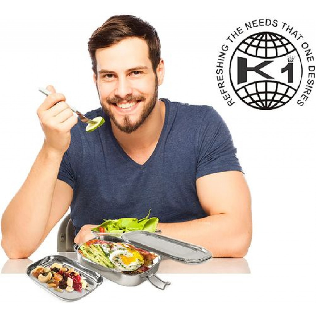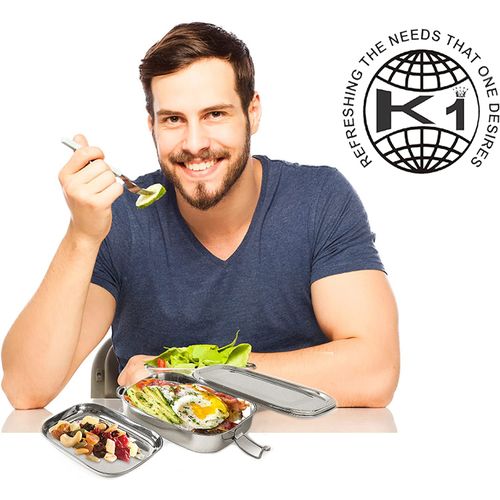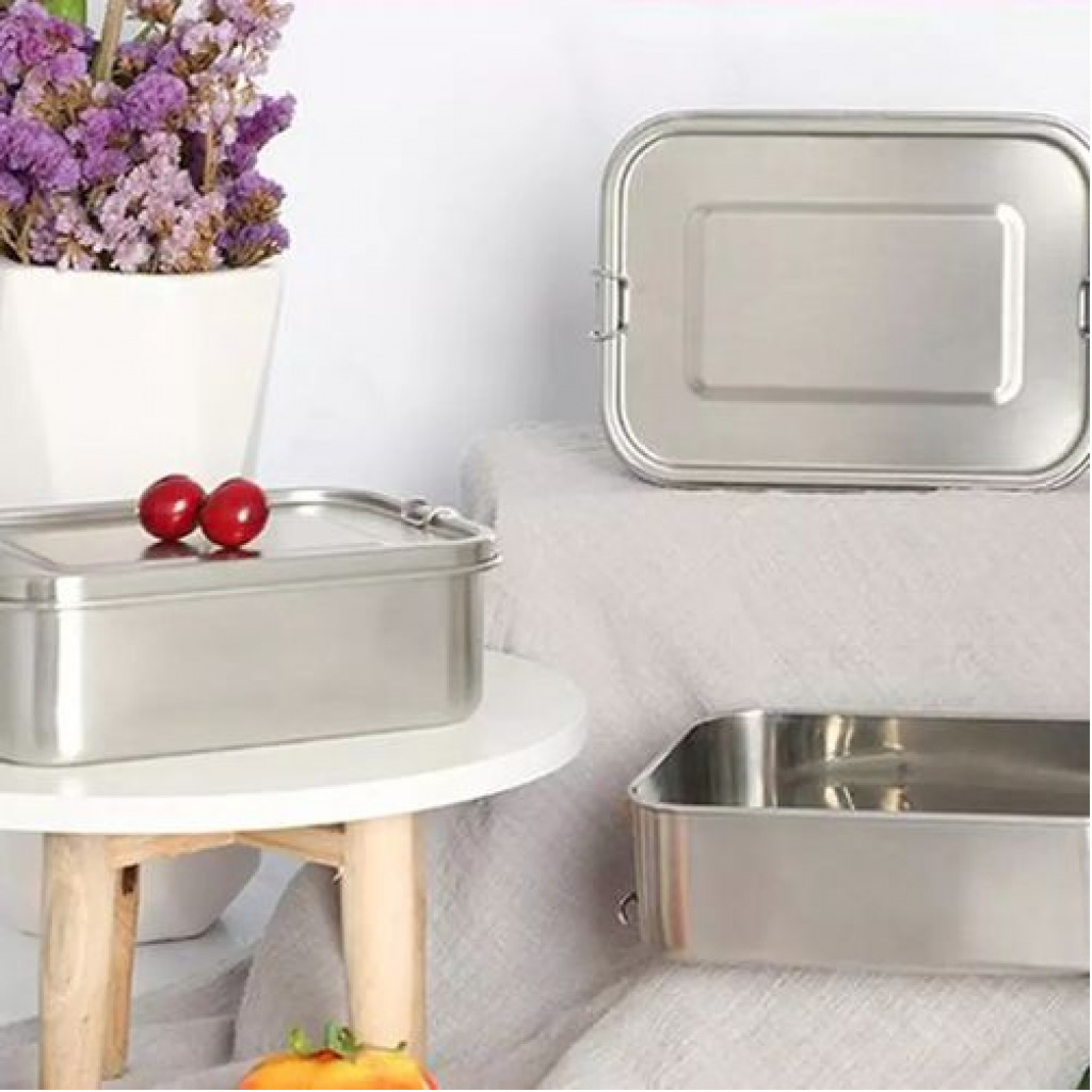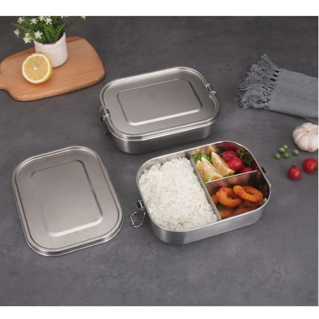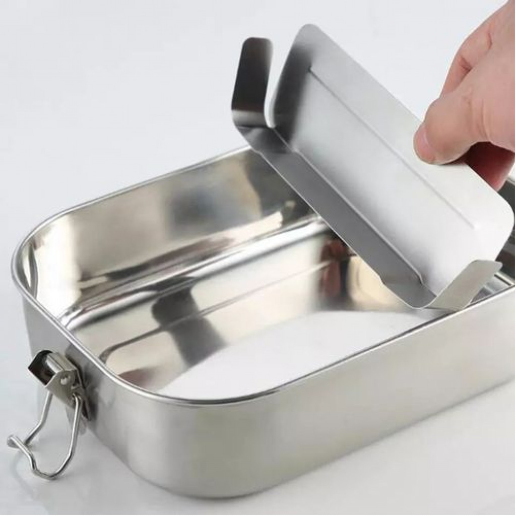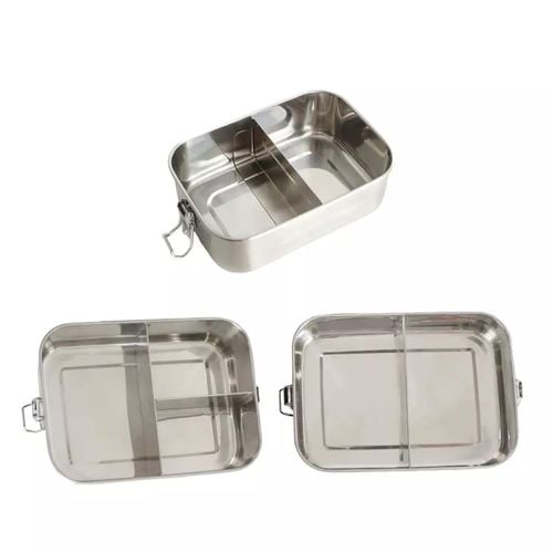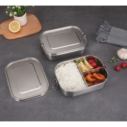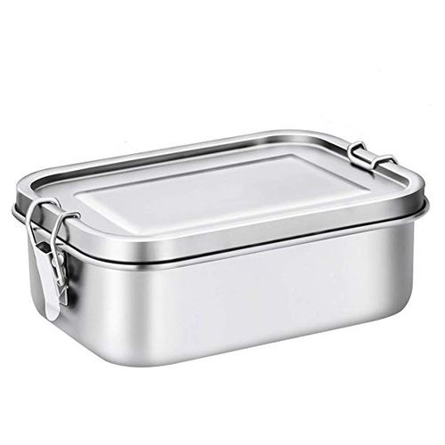 Stainless Steel Rectangle Lunch Box with Buckle Leak-Proof Food Container. Premium quality Stainless Steel reusable Bento Lunch Box, keeps food healthy and fresh for longer. Using a reusable Stainless-Steel Lunch Box/ Bento Box is just another way to help the environment. Perfect for schools kids, work, picnic, takeaways and more this bento lunch box has 3 compartments so you can plan meal portions and separate them with enough room for dips, salads and siders. PREMIUM STAINLESS STEEL – Made from the high quality 18/8 stainless steel, this bento box is ideal container for packing your healthy meals. Because they stainless steel, they’re will not rust or erode overtime and will not impart colors or odors into food. PERFECT LEAKPROOFNESS – With leak-proof lock clips and removable silicone seal, the stainless steel bento box could keep your food fresh and won’t leak out. BALANCE PARTITION CONTROL – This steel bento box could hold 1400ml (47Oz) food for the biggest appetites for growing kids, commuting women and men. EASY TO CLEAN – This metal lunch box is dishwasher safe. Of course, you also could wash it with warm soapy water by hands and patted dry to prevent water spot marks.