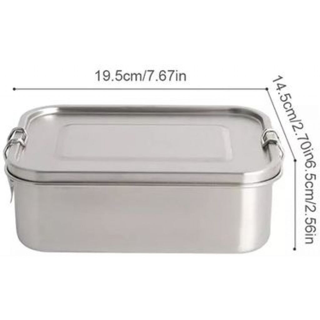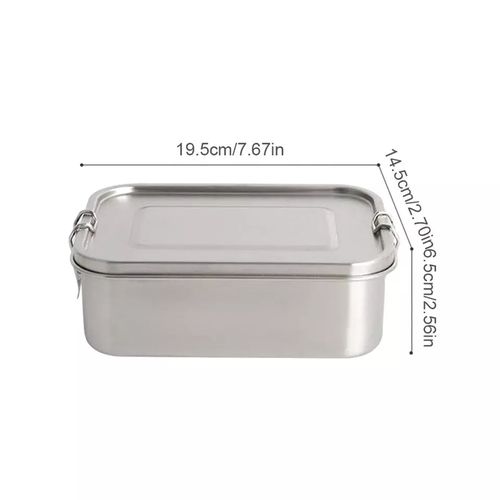Key Features: Stainless Steel #304(18/8) Food safe grade Quality-built to last a lifetime. Leak Proof (for semi liquid like sauces, dips, yogurt etc.) Maintains Freshness. Plastic-free; BPA free. Dishwasher safe- easy to clean. Not recommended for microwave and oven. Recyclable low impact paper box packaging. Length: 21.5 cm, Width: 16.5 cm, Height (with lid): 6 cm; height (without lid): 5.5 cm. Capacity: 1400 ml. Hot & cold foods. Dishwasher safe.