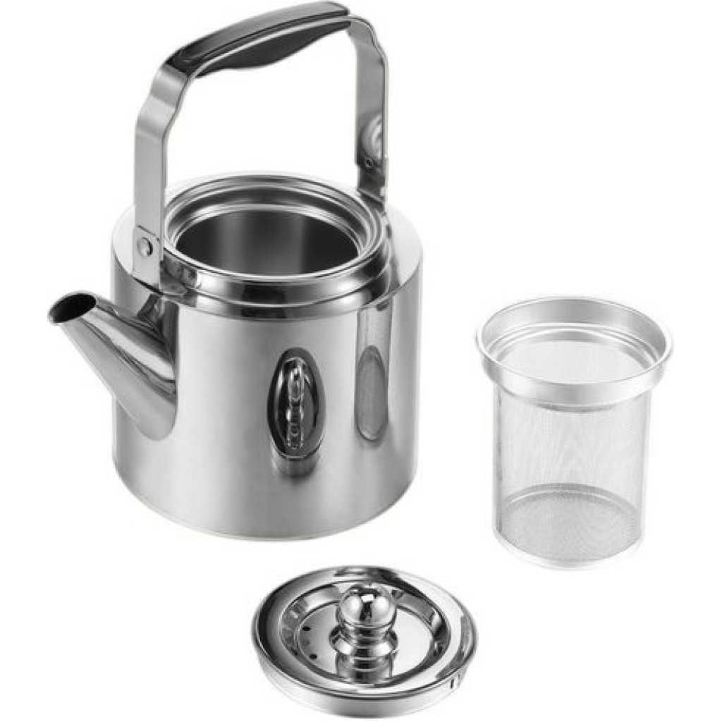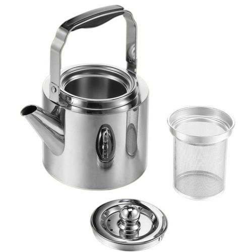 Key Features: Premium Material: Crafted from quality stainless steel , this teapot offers exceptional durability . Its versatile design allows use on induction cookers , gas stoves , electric heaters , ceramic hobs , and even charcoal stoves , meeting all your brewing needs Functional Spout Design: The innovative eagle style spout combines ergonomic comfort with practical functionality . Its unique shape ensures smooth pouring without drips while providing dust protection , bringing convenience to your daily tea time Generous Capacity: With a 1 .8L capacity , this teapot comfortably serves 3 to 6 people . Perfect for both personal use and entertaining guests , it meets all your serving requirements in one brew Removable Tea Infuser: The detachable infuser features a fine mesh filter that effectively strains tea leaves while allowing optimal water circulation for full flavor extraction Upgraded User Experience: The ergonomic handle provides a secure , non slip grip with heat resistant properties for comfortable handling . The energy concentrating base ensures fast , even heating to boil water quickly and save your valuable time