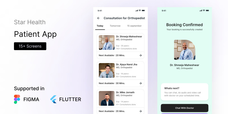 Star Health - Flutter UI Kit. Star Health X Patient UI KIT offers 15+ beautifully designed screens for a comprehensive health check up app.