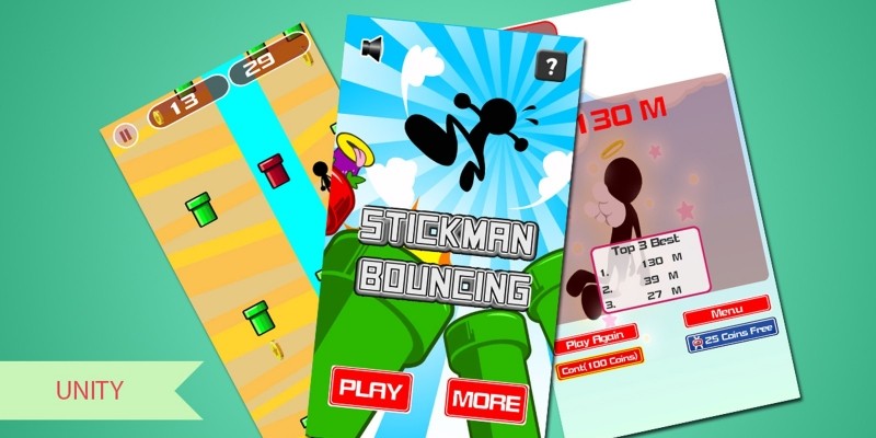 Stickman Bouncing - Complete Unity Project. Stickman Bouncing is a skill game, using your fingers to move the Stickman jump into the tubes