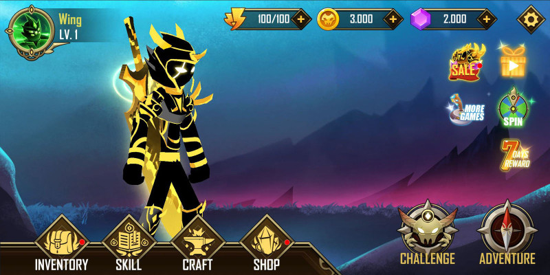 Stickman Epic Battle Shadow Warriors - Unity. Engage in epic stickman battles, upgrade hero, craft items, and conquer challenges in a thrilling adventure!