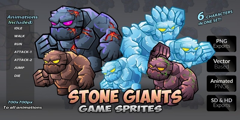 Stone Giants Game Sprites. Game Character Sprite Sheets