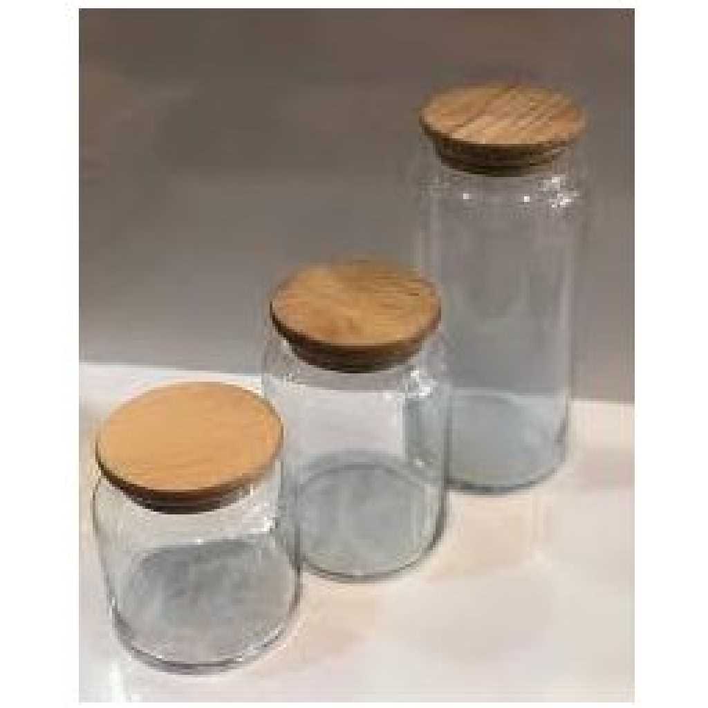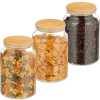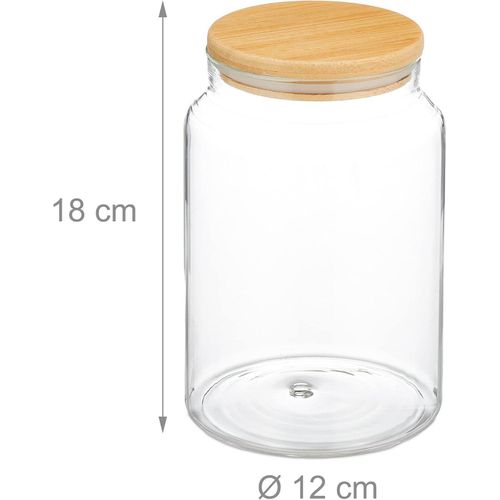 Key Features: Set of 3: large storage jars in a practical set – capacity per storage container Fresh: round glass containers with bamboo lid, silicone ring for airtight food storage Versatile: storage jars for storing cereal, rice, pasta, lentils, flour, etc. kitchen supplies Tidy: with the storage container set, food space-saving and clearly stored in the kitchen Easy care: glass storage container – container without lid can be easily cleaned in the dishwasher