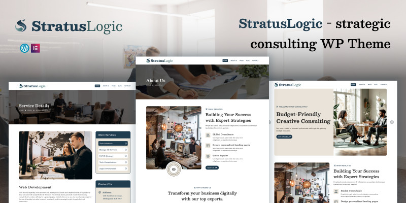 StratusLogic – Consulting Business WordPress The. Strategic consulting WordPress theme for business advisors, financial firms, and corporate agencies—modern, responsive, and Elem