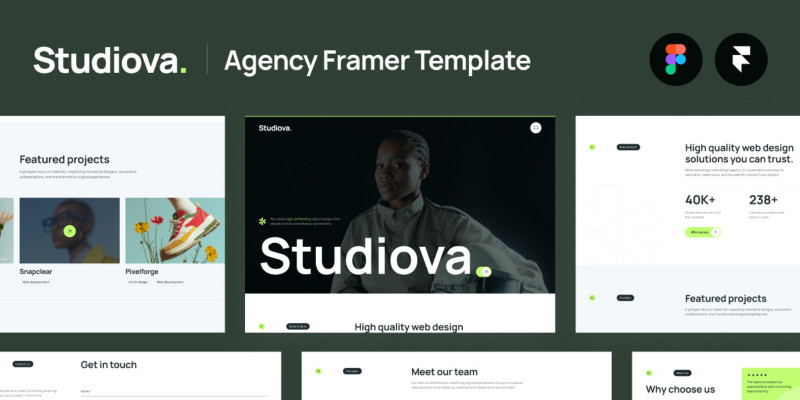 Studiova Agency Framer Template. Studiova Creative Agency Framer Template is a stylish, easy-to-edit Framer Template made for creative agencies and studios.