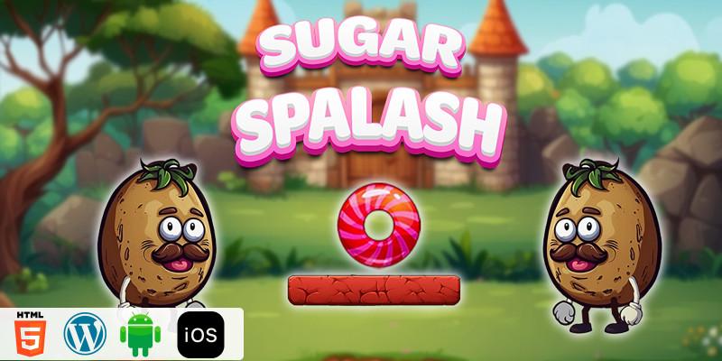 Sugar Splash HTML5 Construct3 Game. ​Sugar Splash is a simple but addictive game. A potato man in the game want to eat the sugar candy.
