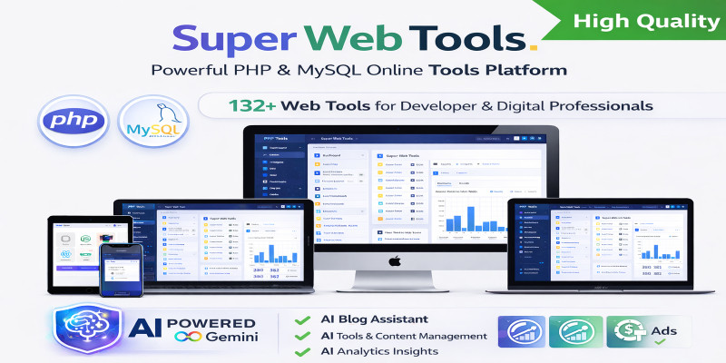 Super Web Tools – AI-Powered Web Tools Suite. AI-powered PHP & MySQL web tools platform with 130+ utilities, admin panel, SEO, CMS, and one-click installation.