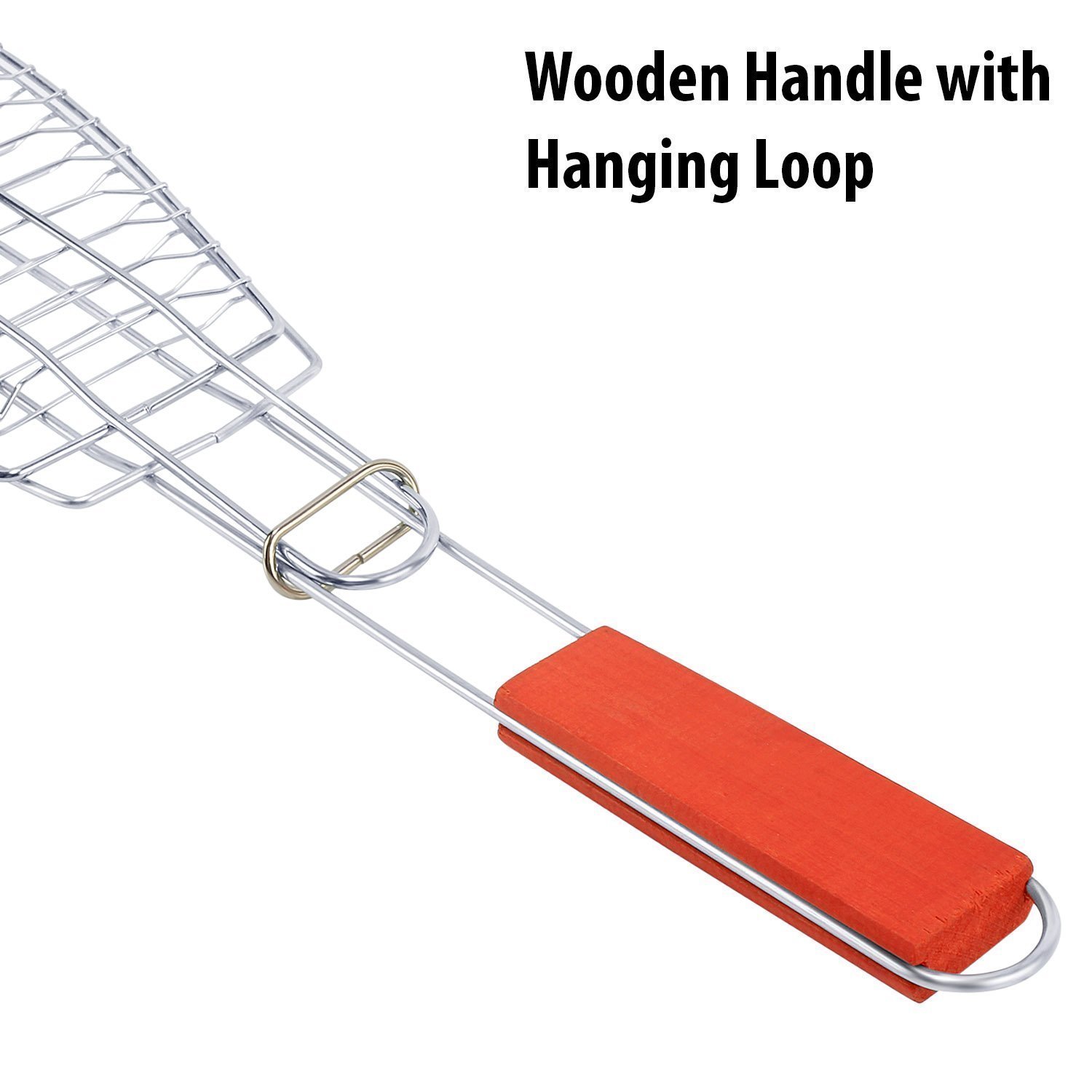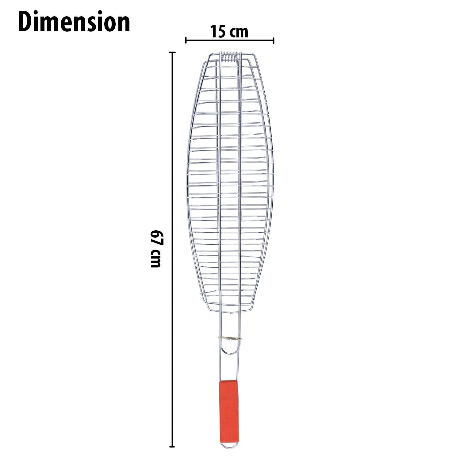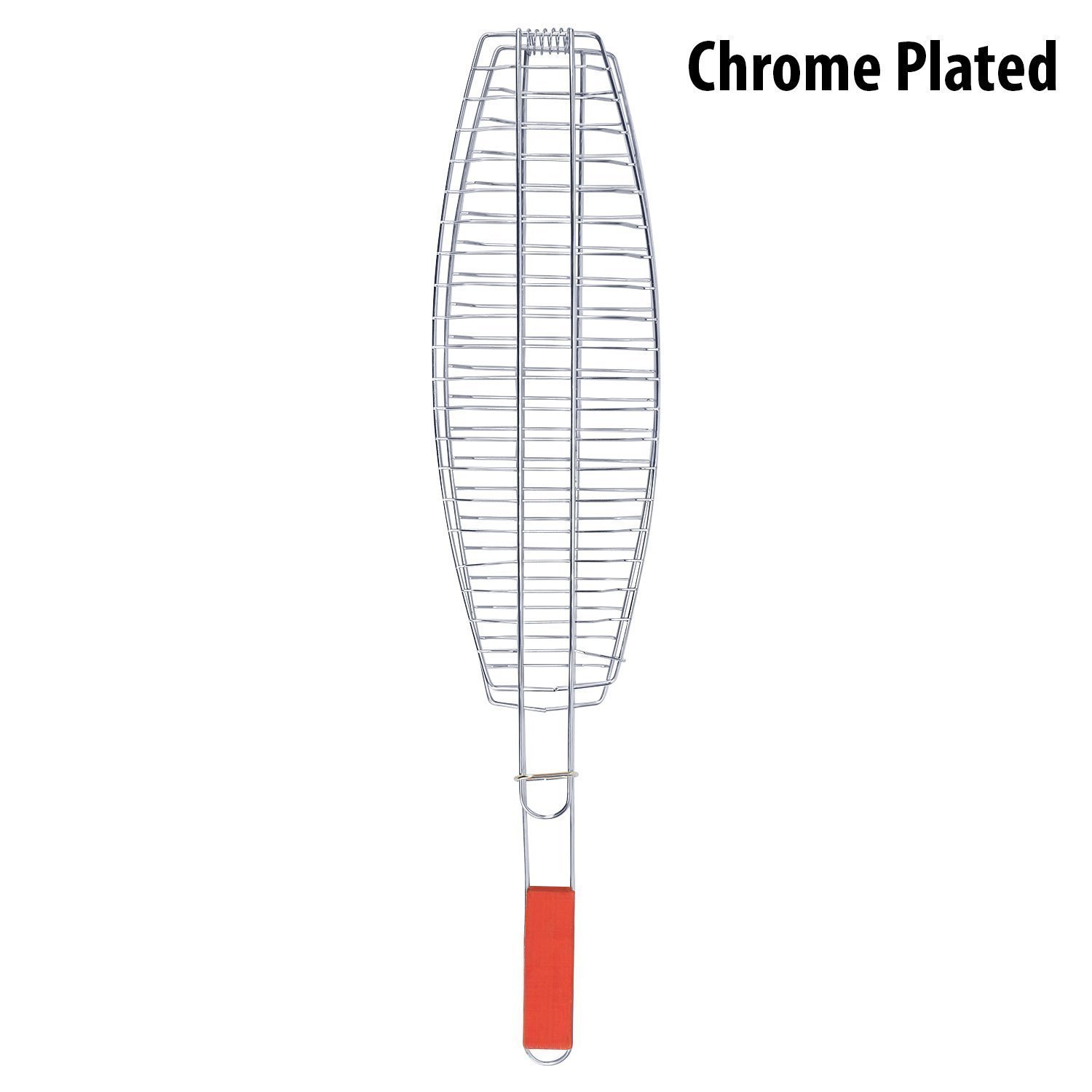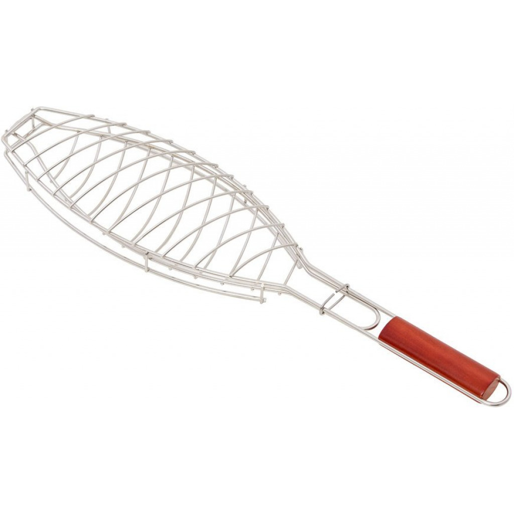 Grill Fish meats or veggies with this BBQ Grill Basket. Chrome Plated Stainless Steel wire body heats up fast and gives excellent non-stick performance. Handle with Sliding Wooden Bar makes safe handling. A grill grate with lid and an easy to use locking mechanism keeps the food firmly pressed during cooking and allows quick flipping and turning of food. Raised sides keeps food from falling off. The lid can be adjusted up and down for varying food thickness. It is a portable equipment to take on beach sides and outdoor parties. Key Features: Premium quality bbq fish grilling basket with long handle provides comfortable holding.Non-stick coating ensures easy food release and clean-up. This bbq grill is made from high-grade chrome plated steel. Fish grill net’s grid gaps are perfectly sized to provide even heat distribution. This camping grill with locking design ensures even cooking and easy flipping.BBQ net also has hanging loop for convenient storage. Size: 67 X 15 CM Package contains 1 barbecue fish griller.