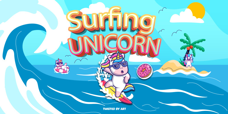 Surfing Unicorn - HTML5 Construct Game. Hyper-casual surfing game where you tap and hold to keep a unicorn riding the waves!