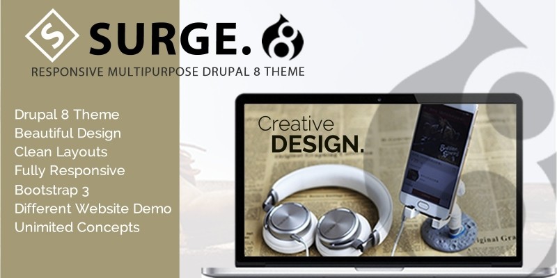 Surge - Multipurpose Responsive Drupal Theme. Responsive Multi-Purpose One & Multi page Drupal 8 theme with many options.