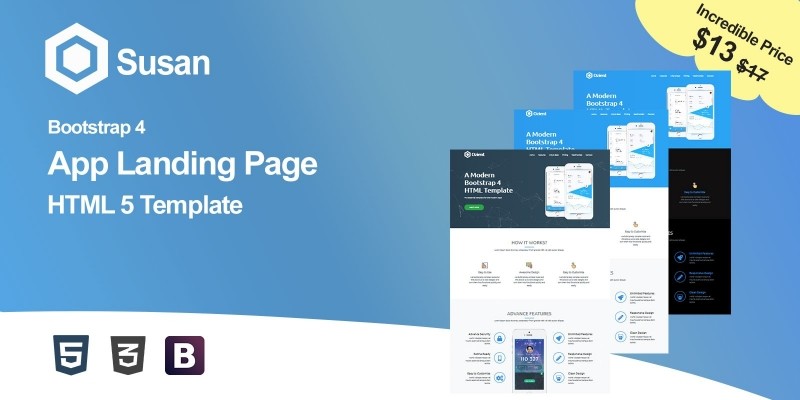 Susan - App HTML5 Landing Page Template. Multipurpose App Showcase HTML5 Template