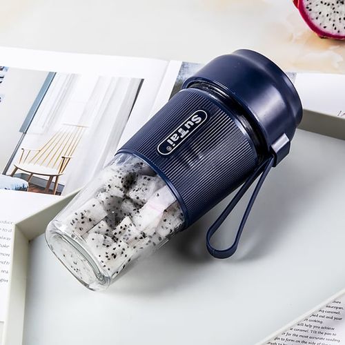 Key Features: SuTai Mini Portable Blender Juicer Cup With USB Charger – Clear. Double Insulated Self Stirring Mug 350ml Electric Fruit Juice Cup Blend All Your Favorite Protein Shakes, Mix Drinks,Cocktails, Coffee Juice Transparent with leak proof lid Portable and Easy To Use Perfect for Gym, Home, Office and Travel Built in mixer automatically mixes drinks with the press of a button Large capacity battery, can be used 15 times on one charge Material: Food grade PP+PC+ABS+304 stainless steel+glass Size: 220*80mm Capacity: 350mL Motor Speed: 15000RPM Full Charged Using Times: 15 times Cutter Blade Material:304 Stainless Steel Cup Cover Material: PP Cup Body Material: PC Cup Holder and Connectors Material: ABS Seal Ring Material: Silicone