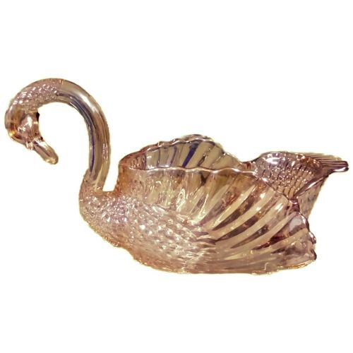 Key Features: Swan Decorative Center Piece, Cookie, Candy Bowl Jar Storage – Brown. Depression glass-style dish Detailed raised floral design Great as a candy dish or a display piece Bubbles and minor imperfections in the glass is typical and part of the charm of this piece Made of glass