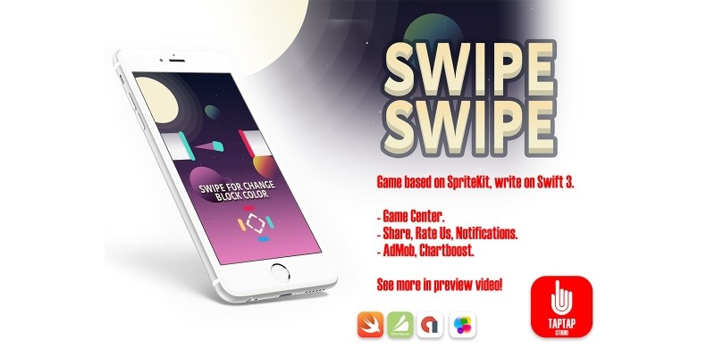 Swipe Swipe - iOS Xcode Source Code. You need swipe for select correct block colour, every time block's speed increase, concentration and increase