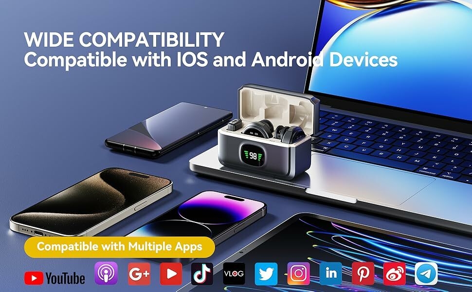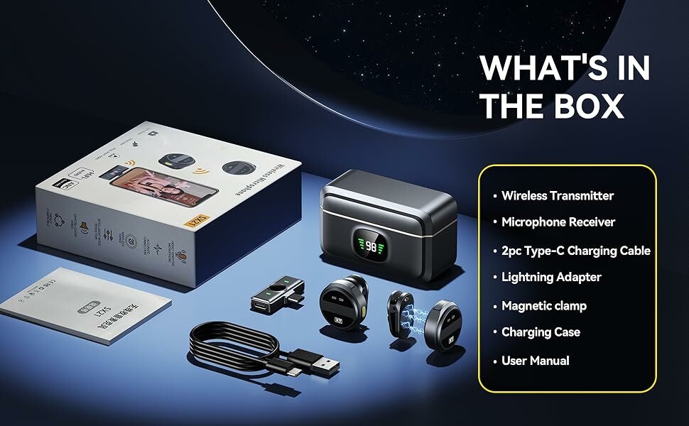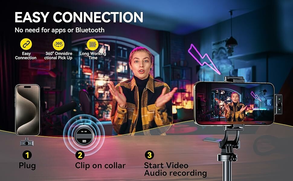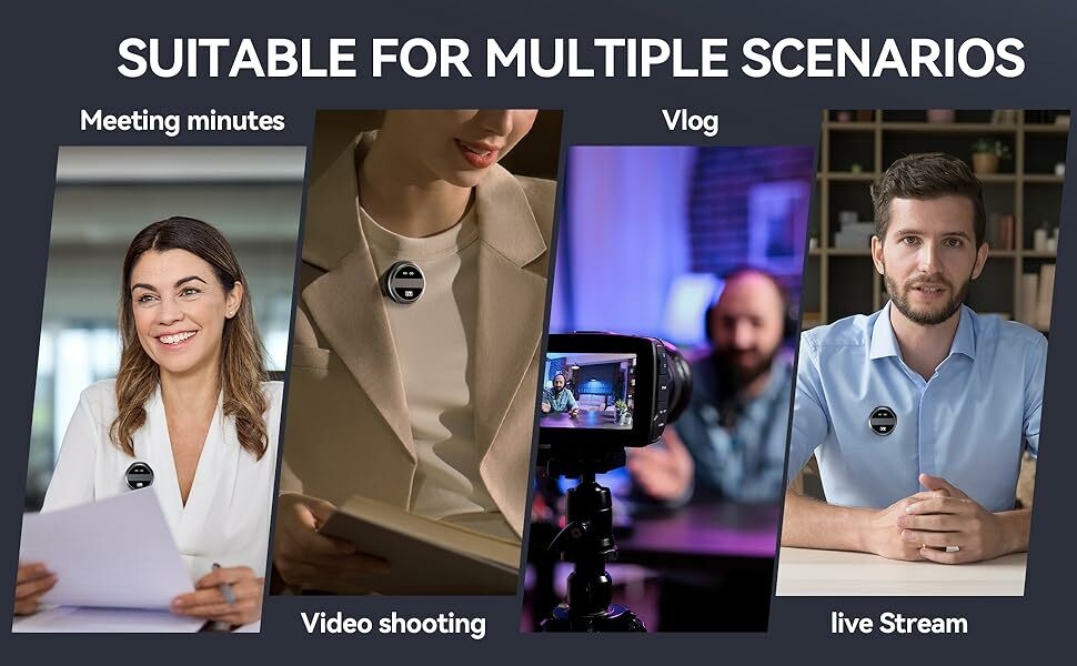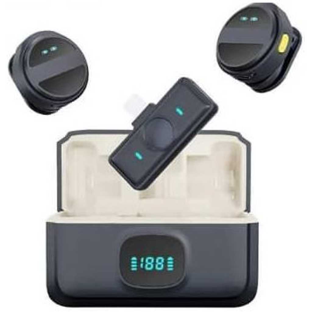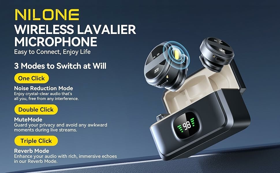 Key Features: 【Plug and Play】- Just plug the connector adapter into iPhone iPad or Android devices, and clip the lavalier mic onto shirt, it automatically connect to your device and start working within 1 seconds. Two pack mini microphones, means two people can get involved in a video recording together. Suits for Youtube, Video, live streaming, Podcast, Blog, Vlog, Zoom, Interview, Online Meeting, Online Education, TikTok and Singing recording ect. 【70-Feet Far Distance Connection】 – Built-in optimized antenna design, enables covering up to 70feet far distance indoor or outdoor stably. The omni-directional microphones for iphone give best clear timbre. Used upgraded high-sensitive condenser microphone, it can deely retsore the sound to most original, and even make the sound qulaity better. Ideal for Bloggers, Journalist, Vloger, Fitness coach, Office people. 【Mini Body Design】- The lavalier microphone is incredibly lightweight, weight only 9 grams(0.33ounces)!!! Bluetooth microphone is ultralight and compact, wireless mic for iphone featuring a convenient elongated shape with perfect weight balance. You won’t even feel tiny microphone when clip. This allows you to affix the wireless mics to any object or part of clothing without worrying about it protruding, sagging due to weight, or slipping during movement. 【Noise-Cancellation Function Design】- The Nilone wireless lapel microphones with charging case, adopts 3 different noise reduction modes. Its own is built-in intelligent active noise reduction chip, means you can record clearly in noisey environment, assists you in meticulously capturing both ambient and talking voices. Built-in 600mAh rechargeable battery, works up to 8hours on a single charge of 2hours. 【Dual-People Pickup】- The 2 mini wireless lavalier microphones can pick up the voices of two people speaking at the same time. This feature is specially designed for filmmakers, vloggers, Live streaming, influencers and podcasters.K61 wireless lavalier microphone compatiable with iPhone Android iPad devices. We can manually stop microphone recording by switching Up, and resume by switching Down.