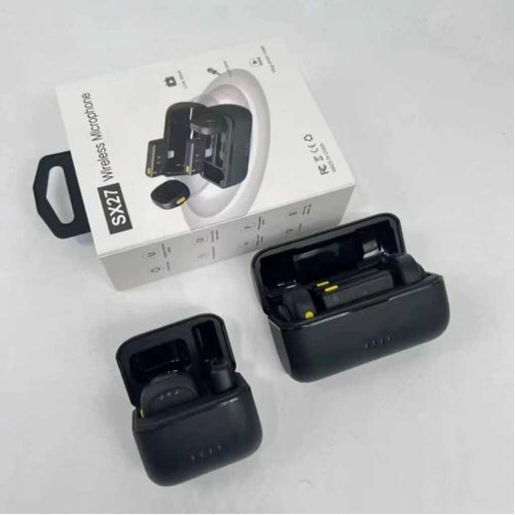 SX27MINIwireless Lavalier Noise Cancelling Microphone AI Noise Cancelling Can Be Used for Taking Photos and Videoslive Broadcast Dual wireless microphones with charging case High-fidelity audio with noise reduction Ideal for Live shows, Interviews, Vlogs, Short videos Plug-and-play for smartphones, cameras, and more Long-lasting rechargeable battery Compact and lightweight design for mobility LED indicators for connection and battery status Dual wireless microphones with charging case High-fidelity audio with noise reduction Ideal for Live shows, Interviews, Vlogs, Short videos Plug-and-play for smartphones, cameras, and more Long-lasting rechargeable battery