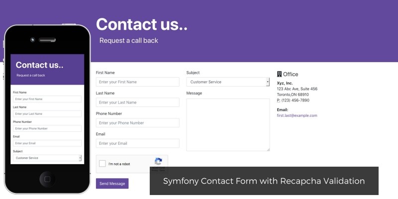 Symfony Contact Form with Recapcha Validation. Contact form with a beautiful Bootstrap frontend and Symfony backend.