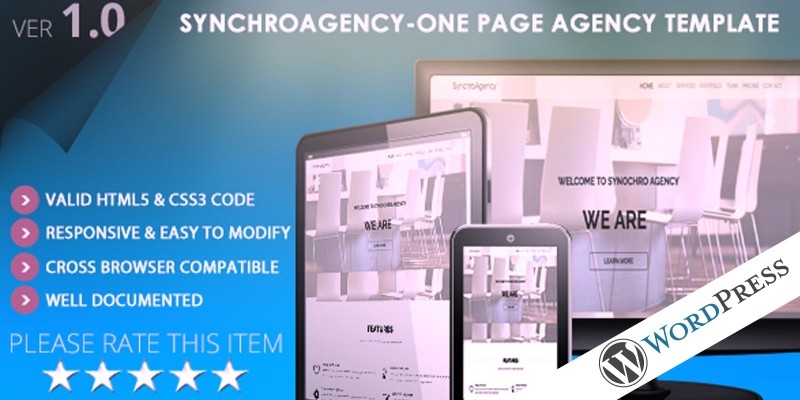 SynchroAgency WordPress Theme. Wordpress One Page Agency & Portfolio Template