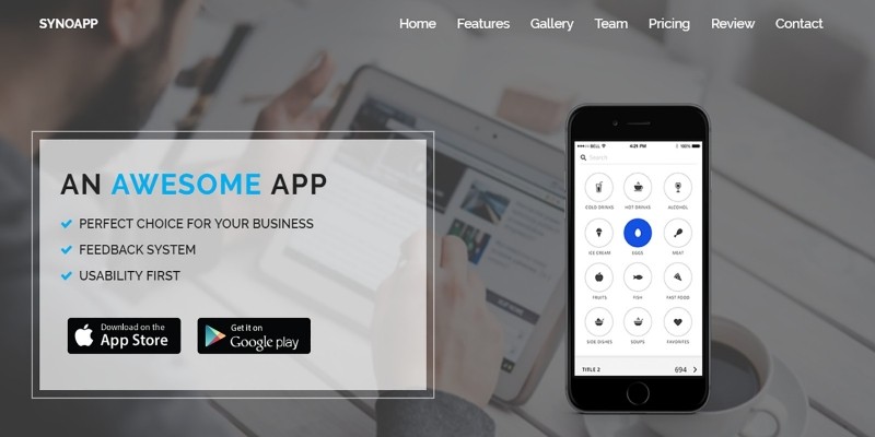 SynoApp - App landing Page Template . SynoApp is a creative and clean powerful responsive HTML5 App Landing Page Template for Mobile App.
