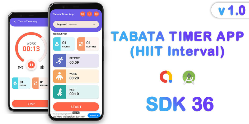 Tabata Timer HIIT - Android App. SDK 36 - HIIT, or High-Intensity Interval Training for Gym (Android SDK 36)