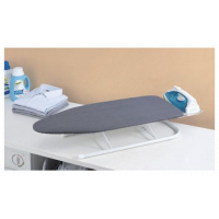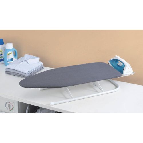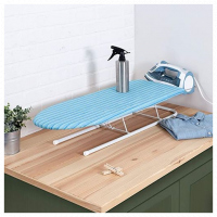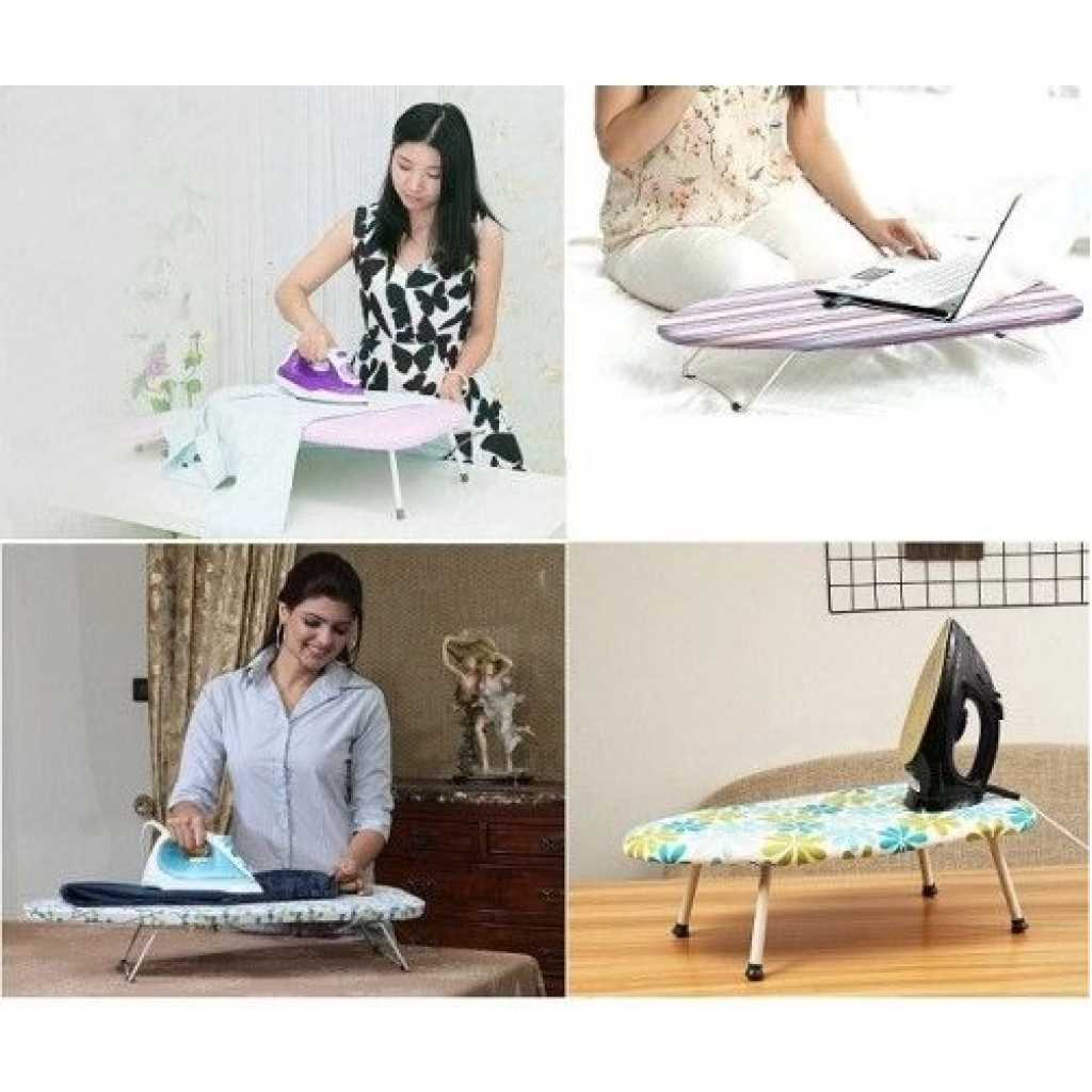Tabletop Mini Ironing Board/laptop table Multifunctional Mini Tabletop ironing board/ Laptop Table is made of metal mesh which creates a better ironing surface allowing hot air to pass through the garment to get the wrinkles out faster. It hangs off a metal hook so that it can be stored behind a door or inside the closet when not in use. It is built for convenience – you can have a lunch or snack comfortably in the mid of a trip, read magazines, laptop table, share a drink, solve a jigsaw puzzle and a perfect companion to portable chairs. Just slide the table tray surface to a horizontal position and its ready for use.