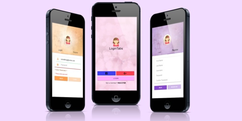 Tabs Glittery Login - Ionic Login Template. Beautiful theme for login using ionic3 tabs with form validation
