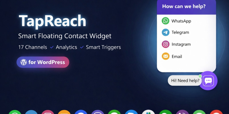 TapReach - Smart Floating Contact Widget WordPress. Add a beautiful floating contact widget with 17 channels, built-in analytics, smart triggers, lead capture & live preview edit