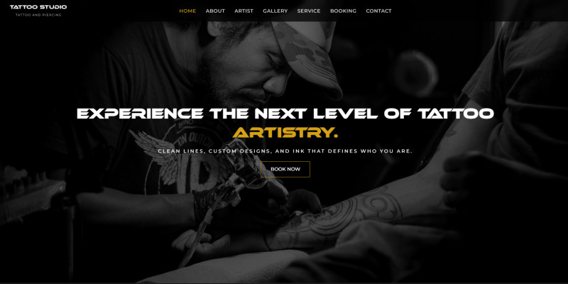 Tattoo Studio - Tattoo Appointment Web Template. A modern, fully responsive website template for tattoo studios: book clients, showcase artists and services—all in one place.