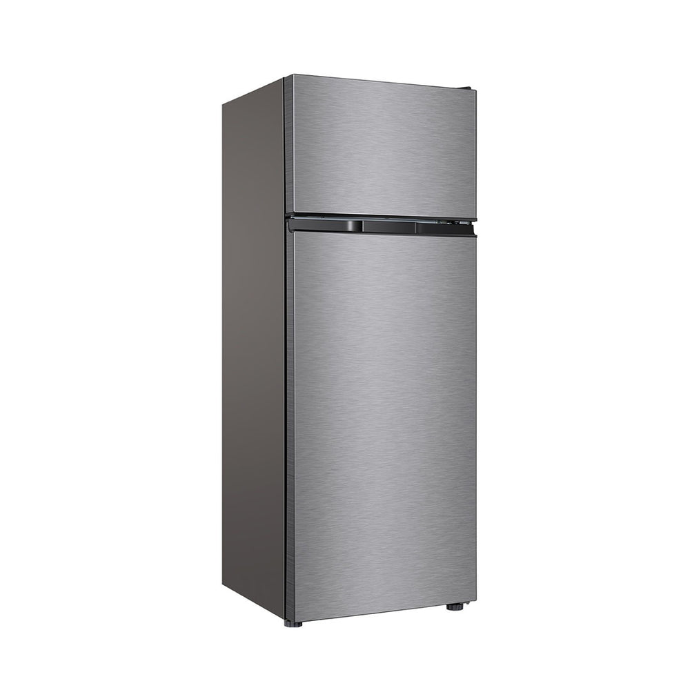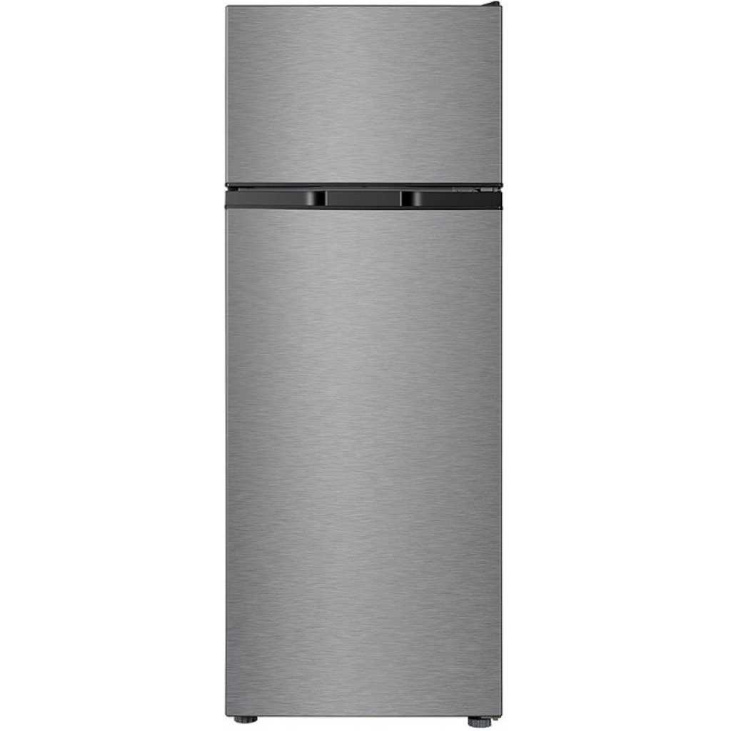Key Features: TCL 270L Fridge F270TM, Double Door Top Mount Freezer Defrost Refrigerator – Silver. Capacity : 270 liters, providing ample space for your refrigeration needs Cooling System : Direct cooling technology for effective and consistent cooling Energy Efficiency : Inverter technology helps save energy and reduce electricity bills Noise Level : Operates quietly, ensuring a peaceful kitchen environment Interior Features : Includes a crisper drawer to keep fruits and vegetables fresh, adjustable tempered glass shelves for customizable storage, and spacious door compartments for beverages and smaller items Interior LED Lighting : Enhances the visibility of contents Manual Defrost Function : Allows for easy maintenance Multi-Airflow System : Ensures even cooling across all compartments Durable Design : Sleek and modern, fitting seamlessly into various kitchen decors