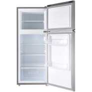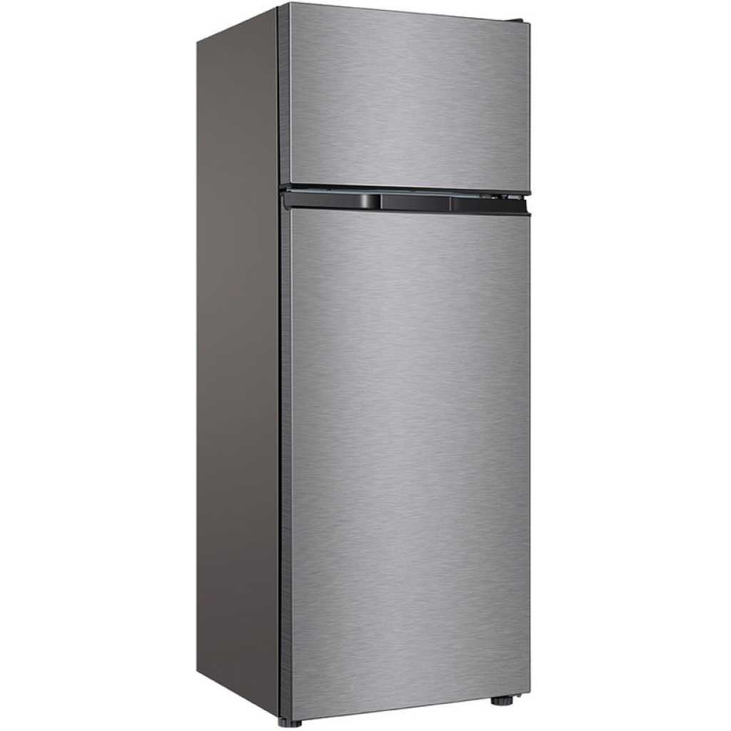 TCL 270L Fridge F270TM, Double Door Top Mount Freezer Defrost Refrigerator – Silver. Capacity : 270 liters, providing ample space for your refrigeration needs Cooling System : Direct cooling technology for effective and consistent cooling Energy Efficiency : Inverter technology helps save energy and reduce electricity bills Noise Level : Operates quietly, ensuring a peaceful kitchen environment Interior Features : Includes a crisper drawer to keep fruits and vegetables fresh, adjustable tempered glass shelves for customizable storage, and spacious door compartments for beverages and smaller items Interior LED Lighting : Enhances the visibility of contents Manual Defrost Function : Allows for easy maintenance Multi-Airflow System : Ensures even cooling across all compartments Durable Design : Sleek and modern, fitting seamlessly into various kitchen decors