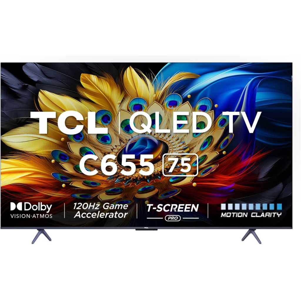 TCL 75 inches QLED PRO 4K Ultra HD Smart Google TV 75C655, HDR 10+, Dolby Vision Atmos, 120Hz VRR+120Hz DLG, ONKYO 2.1ch, Slim & Uni-body Design (2YRs WRTY)
