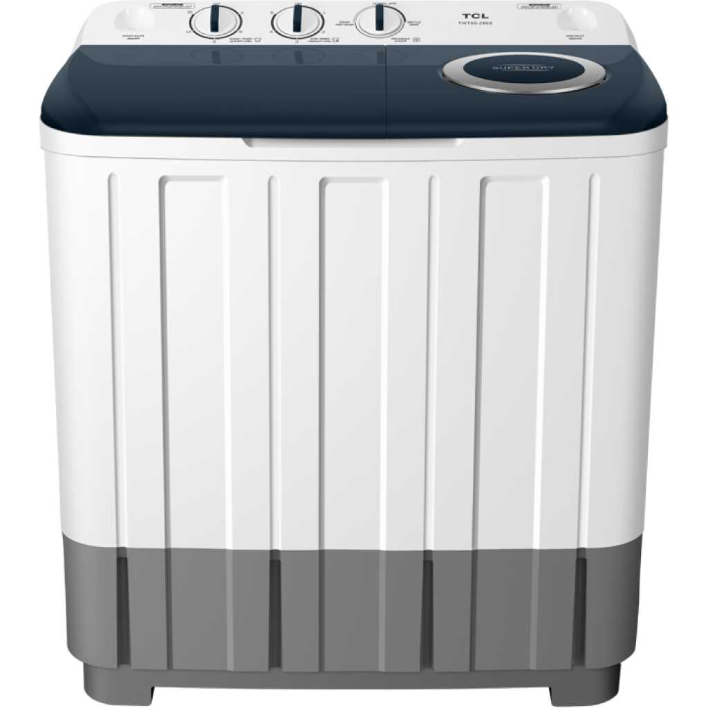 Key Features: TCL 8kg Twin Tub Washing Machine, Semi-automatic Washing Machine (Wash & Dry) F207TT – White (2YR WRTY). Wash Capacity: 8kg Spin Capacity: 7kg Water inlet: 2 Transparent Lid Lint Filter Heavy/Regular Wash Action Setting High Back Design Super Dry Water Inlet Selector Double-layer cabinet ABS Control panel Wash lid / spin lid Material: ABS Free Wash Lid Fixed Spin Lid Twin Tub Classic Design Lint Filter White Color Water Selector Rust Proof Body Durable plastic body Large, easy-to-use controls Energy-saving features Low noise operation