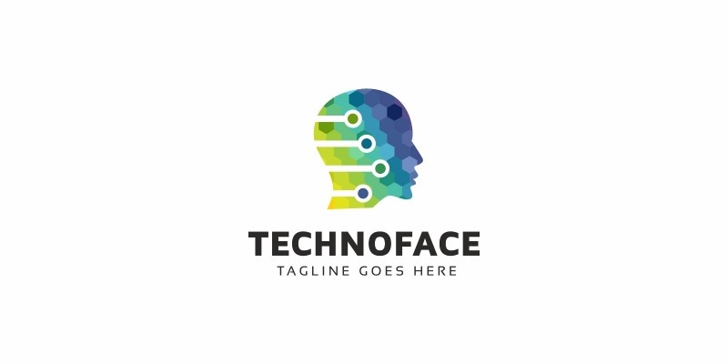 Techno Face Logo. A simple and excellent logo template suitable for a creative team, studio, developers, electronic etc.