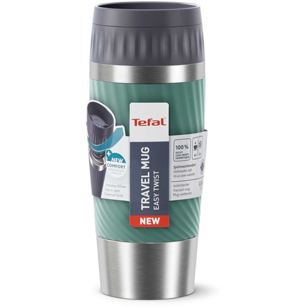 TEFAL 0.36L Thermal Bottle Travel Mug Essential Green, Stainless Steel Essential Double Wall Insulation Keeps Hot Drinks 3 Hours Cool 6 Hours Stainless Steel Silicone Coating Travel, N2021810 Brand – TEFAL Product Name – TEFAL TRAVEL MUG EASY TWIST Colour – Green Material – Stainless steel (SST) Capacity – 0.36 L BPA free – Yes Watertight – Yes Cold Retention – 8 hours Heat Retention – 6 hours Insulation type – Double-wall stainless steel (Vacuum) Dishwasher safe – Yes Key Features: TEFAL 0.36L Thermal Bottle Travel Mug Essential Green, Stainless Steel Essential Double Wall Insulation Keeps Hot Drinks 3 Hours Cool 6 Hours Stainless Steel Silicone Coating Travel, N2021810 TEFAL ESSENTIAL THERMAL TRAVEL MUG • 0.36LTR CAPACITY • 8 HOURS COLD RETENTION • 4 HOURS HEAT RETENTION • 100% LEAK PROOF • DISHWASHER SAFE • BPA FREE • 360 DRINKING – QUICK PRESS • ANTI SLIP PAD • SLEEVE-SILICONE