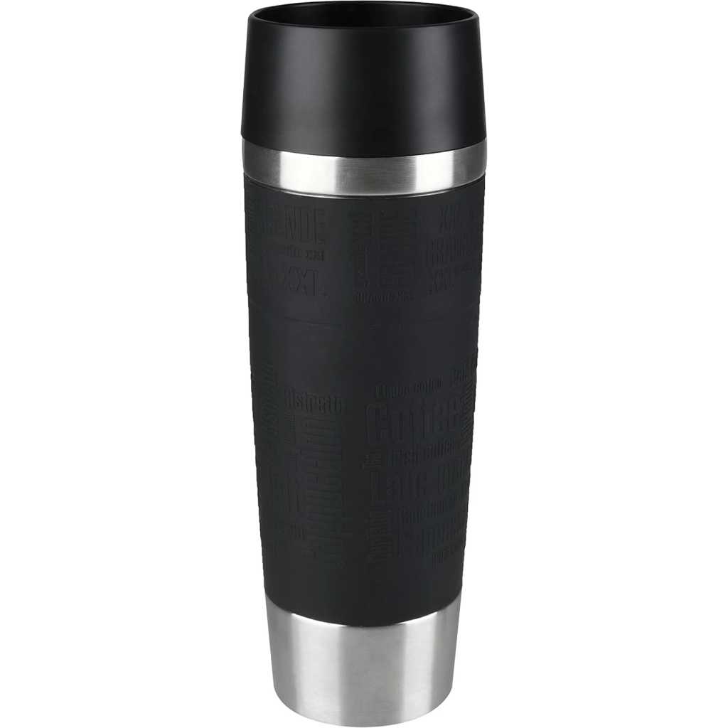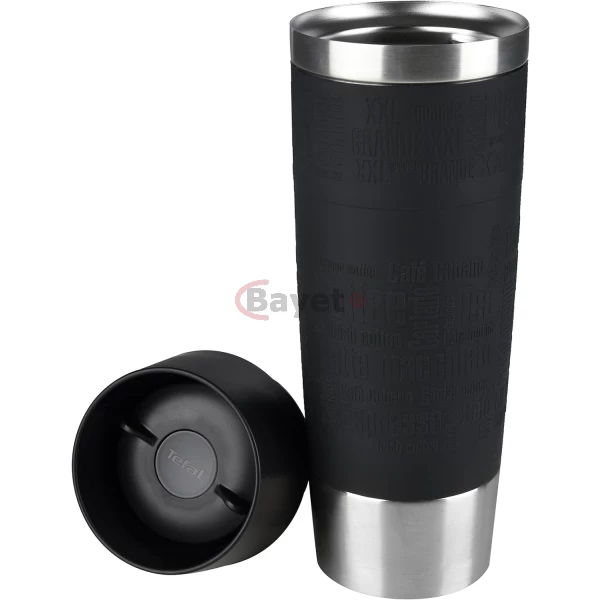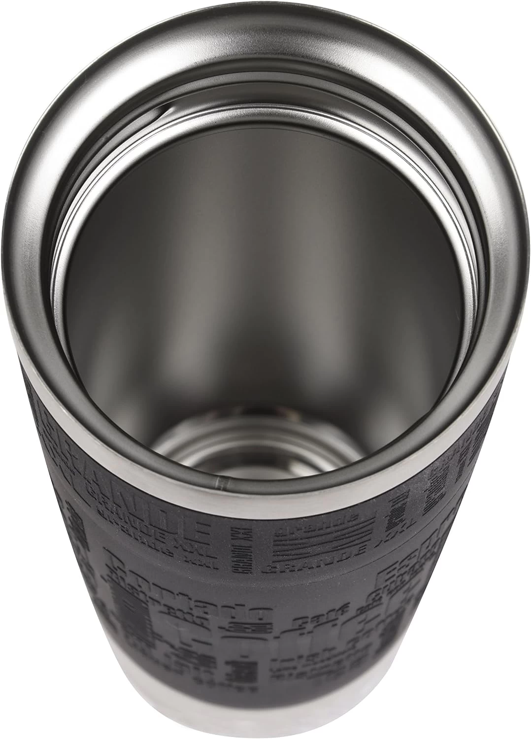 Tefal 0.5L Thermal Travel Mug K3081214 – Black. For Drinks on the go: This large vacuum flask is the ideal companion for your drinks on the go: Take your hot coffee, tea or cold drinks with you wherever you go Easy Drinking: Thanks to the 360 Degree circular drinking aperture so you can drink from any direction Easy to take away: The 100 Percent leakproof thermal bottle comes with a handy quick press seal and can be easily opened with the press of a button Suitable conservation: Keep your beverages hot for up to 6 hours or cold for up to 12 hours 100 Percent Harmless: This ecodrink is BPA Free, dishwasher safe and is an environmentally-conscious option to avoid plastic bottles