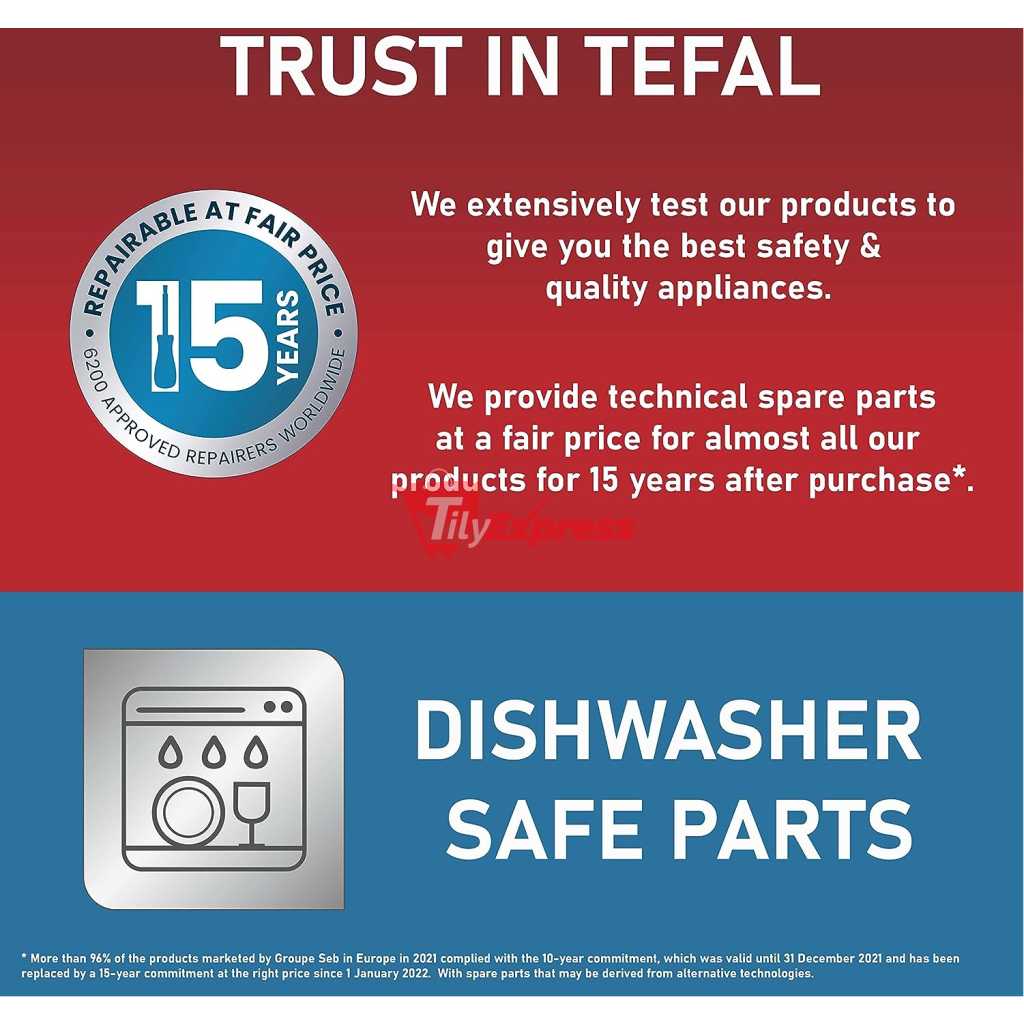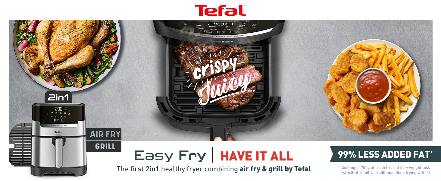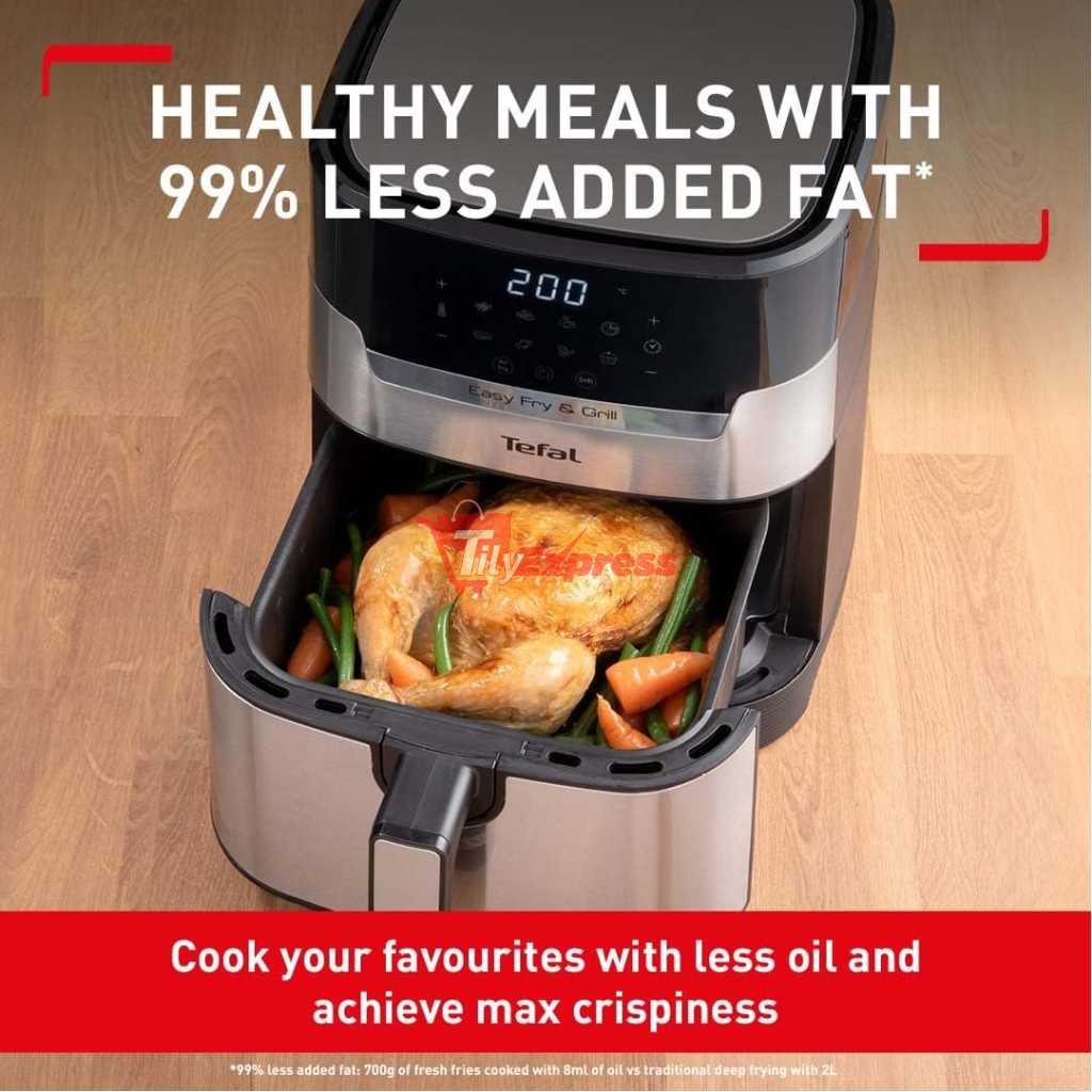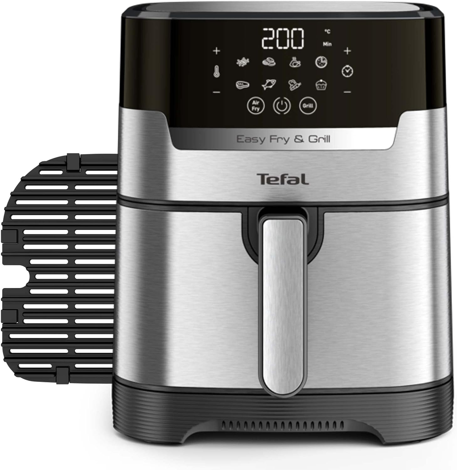 Tefal 4.2L Easy Fry Precision+ 2-in-1 Digital Air Fryer and Grill; 8 Programs inc Dehydrator Stainless Steel EY505D, 1550W. 2 WAYS TO COOK: Tefal’s first digital stainless-steel air fryer and grill in one. Exclusive Extra Crisp air frying technology maximises the crispiness of your food without compromising on flavour and moisture COOK FASTER AND SAVE ENERGY: Prepare a wide variety of meals 49% faster* than in a conventional oven, get that crispy crunch and taste you love in half the amount of time. Save up to 70% energy** whilst saving up to £156 on your energy bills NO PREHEAT NEEDED: Extra Crisp air frying technology delivers instant heat, so there’s no need for preheating. Just choose from 8 automatic programs or set your own temperature (80-200°C) and time (<60mins) and start cooking straight away SMOKELESS INDOOR GRILLING: Enjoy grilling indoors with 98% less smoke***. Get that juicy grilling taste with our one-of-a-kind, die-cast aluminium Sizzling Grill Plate A HEALTHIER ALTERNATIVE: Air frying offers a quick and easy way to make healthy versions of all your favourite foods – fresh or frozen. From crispy chips and juicy burgers to grilled halloumi and falafel. And all with 99% less added fat**** NO OVEN REQUIRED: Cooking crisp, tasty food faster than an oven (and with less faff!), Easy Fry Precision 2-in-1 brings a new meaning to ‘fast food’. Enjoy crispy and juicy chicken thighs in just 20 minutes versus 40 minutes in a conventional oven EASY CLEAN: With its clever easy-to-clean design, Tefal Easy Fry makes mealtimes a cinch. Simply pop the drawer and grill plate straight in the dishwasher – job done! Then sit back and enjoy your delicious dinner knowing clean-up is taken care of Technical Details Key Features: Tefal 4.2L Easy Fry Precision+ 2-in-1 Digital Air Fryer and Grill; 8 Programs inc Dehydrator Stainless Steel EY505D, 1550W. 2 WAYS TO COOK: Tefal’s first digital stainless-steel air fryer and grill in one. Exclusive Extra Crisp air frying technology maximises the crispiness of your food without compromising on flavour and moisture COOK FASTER AND SAVE ENERGY: Prepare a wide variety of meals 49% faster* than in a conventional oven, get that crispy crunch and taste you love in half the amount of time. Save up to 70% energy** whilst saving up to £156 on your energy bills NO PREHEAT NEEDED: Extra Crisp air frying technology delivers instant heat, so there’s no need for preheating. Just choose from 8 automatic programs or set your own temperature (80-200°C) and time (<60mins) and start cooking straight away SMOKELESS INDOOR GRILLING: Enjoy grilling indoors with 98% less smoke***. Get that juicy grilling taste with our one-of-a-kind, die-cast aluminium Sizzling Grill Plate A HEALTHIER ALTERNATIVE: Air frying offers a quick and easy way to make healthy versions of all your favourite foods – fresh or frozen. From crispy chips and juicy burgers to grilled halloumi and falafel. And all with 99% less added fat**** NO OVEN REQUIRED: Cooking crisp, tasty food faster than an oven (and with less faff!), Easy Fry Precision 2-in-1 brings a new meaning to ‘fast food’. Enjoy crispy and juicy chicken thighs in just 20 minutes versus 40 minutes in a conventional oven EASY CLEAN: With its clever easy-to-clean design, Tefal Easy Fry makes mealtimes a cinch. Simply pop the drawer and grill plate straight in the dishwasher – job done! Then sit back and enjoy your delicious dinner knowing clean-up is taken care of